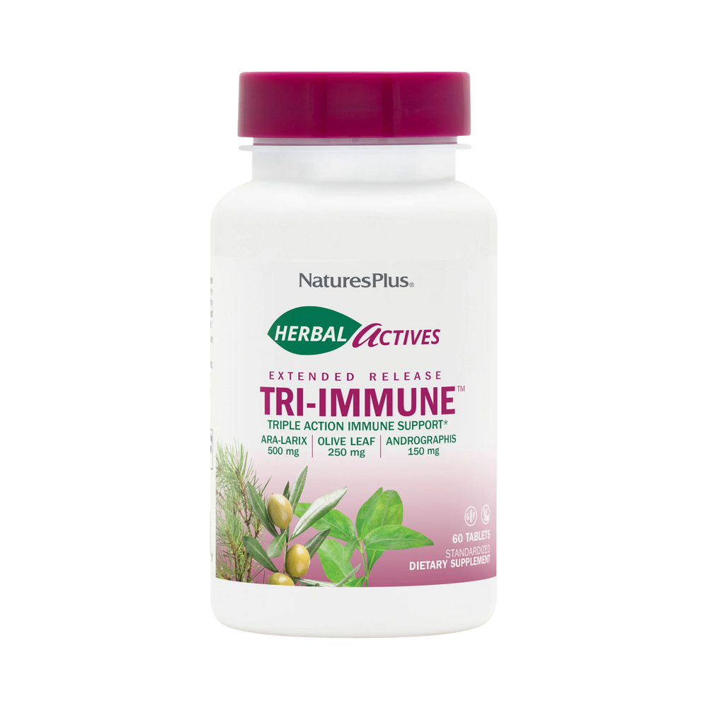 NaturesPlus® Herbal Actives Tri-Immune™ Extended Release Tablets supply the unique actions of three powerful immune- supporting botanicals. Nutritionally support a healthy immune system with standardized arabinogalactans, olive leaf and andrographis in one convenient, extended-release formula.