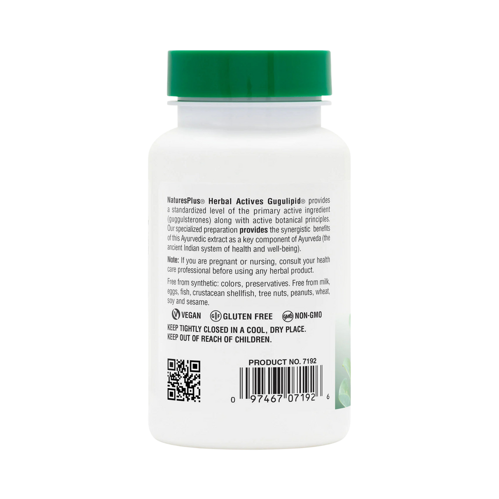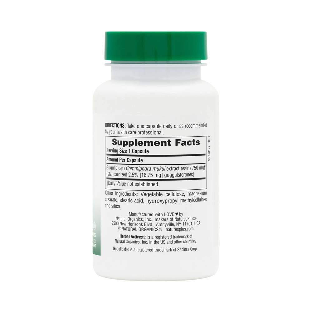 Gugulipid® (Commiphora mukul gum resin). Other ingredients: Vegetable cellulose, magnesium stearate, stearic acid, hydroxypropyl methylcellulose and silica.