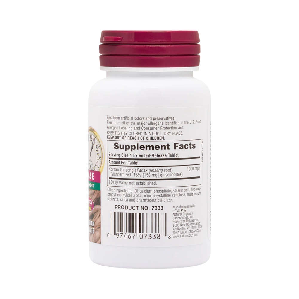 | Korean Ginseng Root (Panax ginseng) (standardized 15% [150 mg] ginsenosides) | 1000 mg | † |
