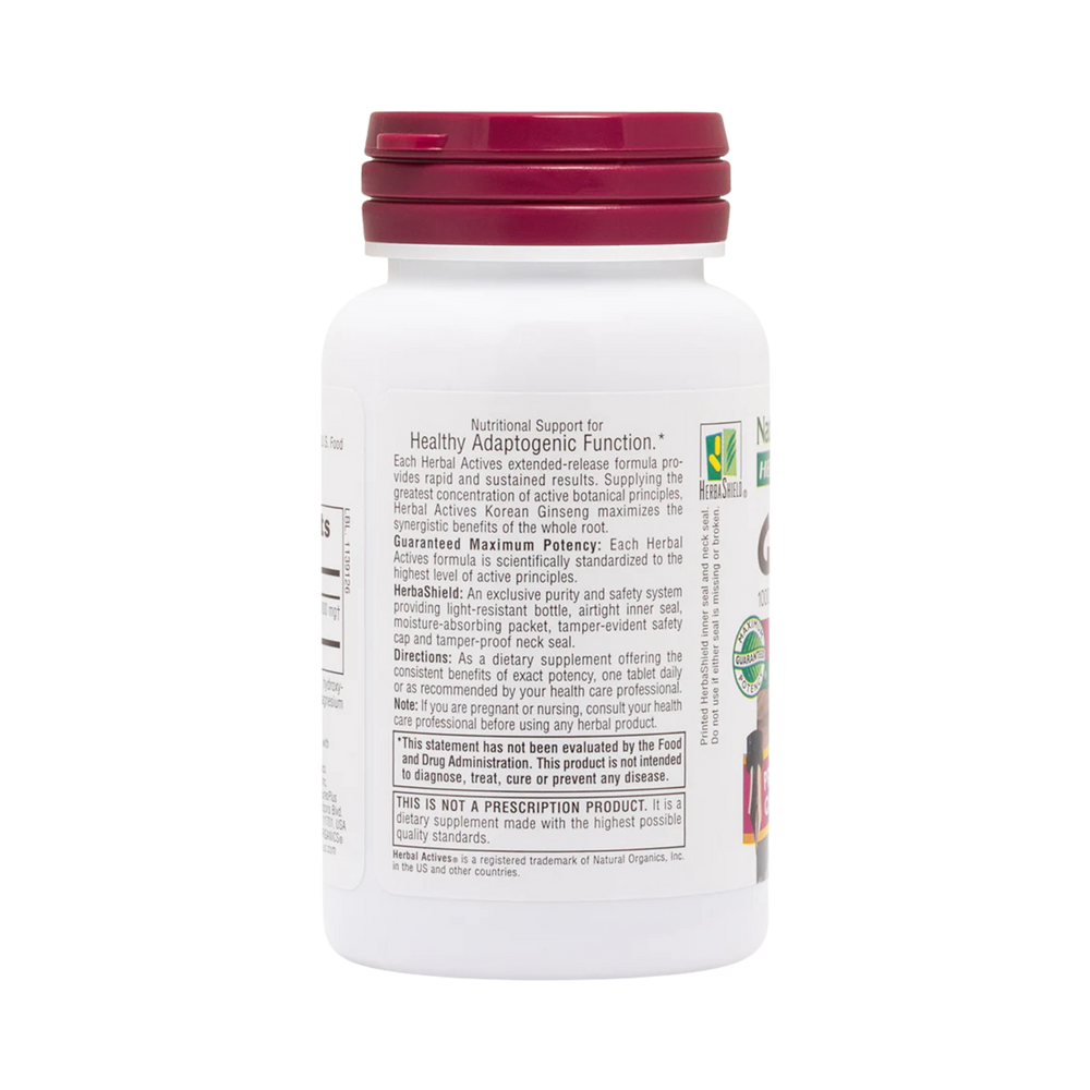 Each Herbal Actives extended-release formula provides rapid and sustained results. Supplying the greatest concentration of active botanical principles, Herbal Actives Korean Ginseng maximizes the synergistic benefits of the whole root.