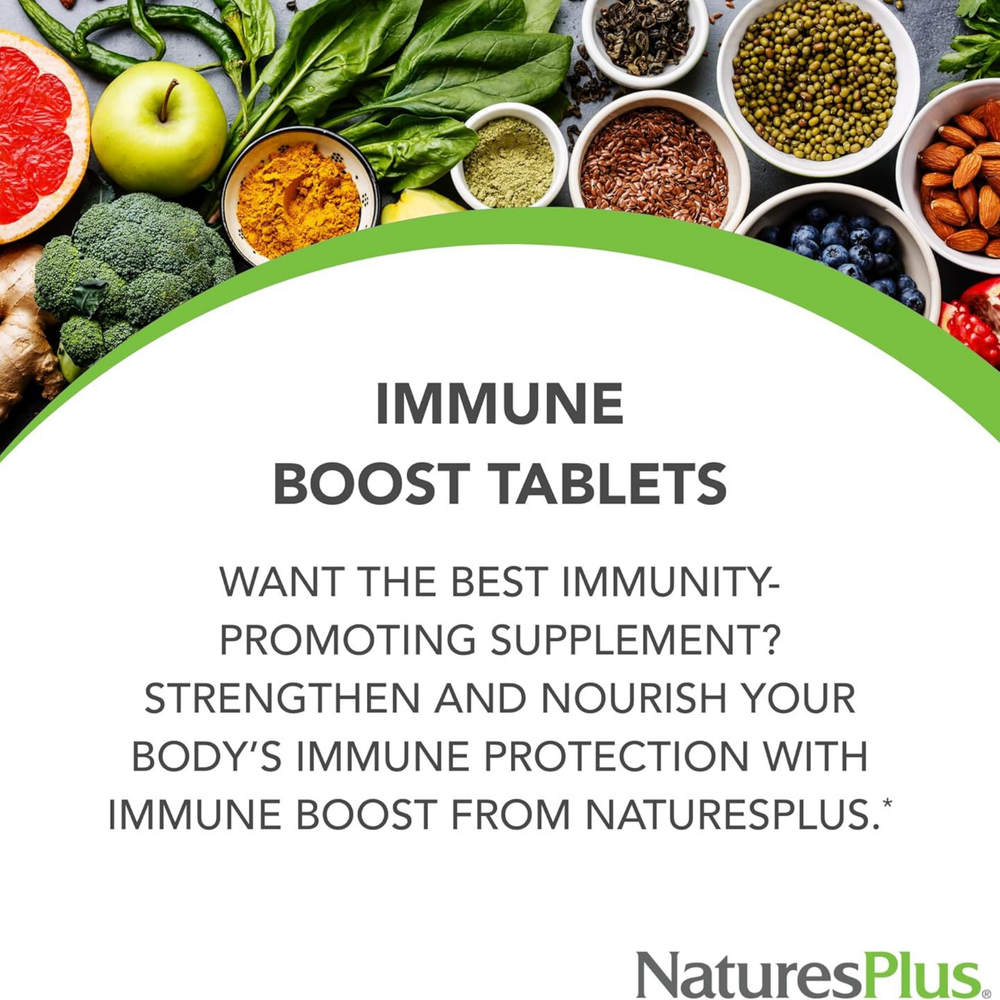 Strengthen and nourish your natural immune protection with the power of NaturesPlus® Immune Boost! Uniquely formulated delivering 6 key nutrients to support respiratory and overall immune system health. NaturesPlus Immune Boost provides robust immune support with high-potency vitamins and minerals along with N-Acetyl-Cysteine. These nutrients promote production of the powerful immune-support antioxidant enzyme, Glutathione.*