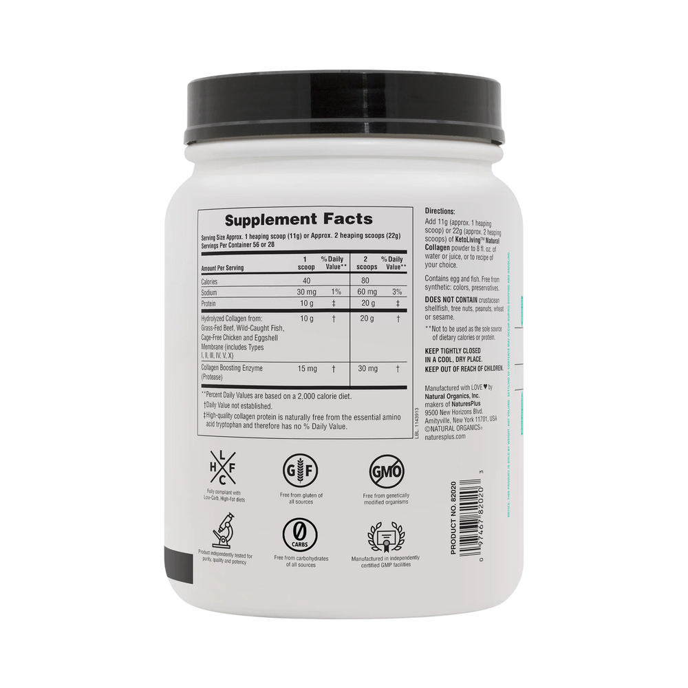 Add 1 heaping scoop (11 g) or 2 heaping scoops (22 g) of KetoLiving™ Natural Collagen powder to 8 fl. oz. of any liquid or recipe of your choice.