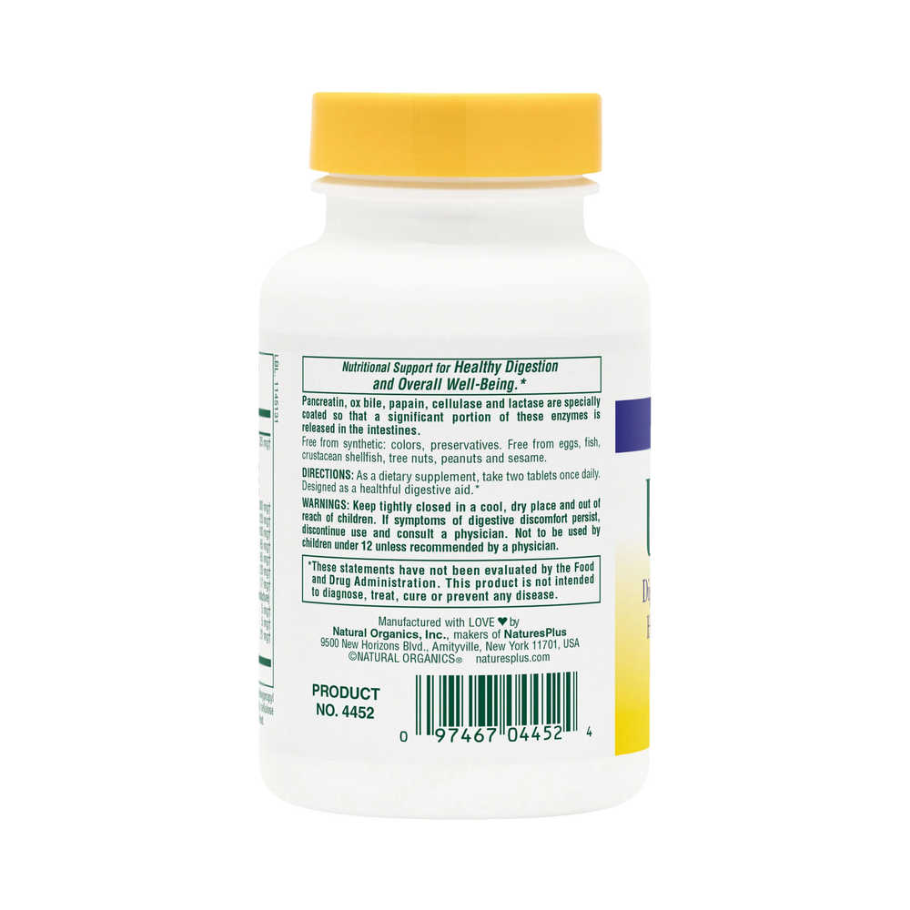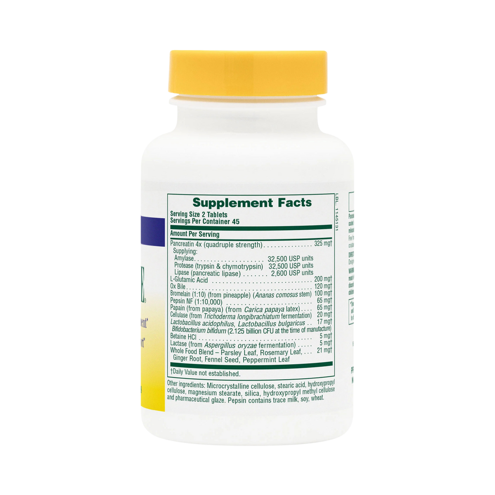 Pancreatin, ox bile and papain are specially coated to provide release of these enzymes in the intestines. Cellulase and lactase are specially coated to provide release of 50% of these enzymes in the stomach and 50% in the intestines.
