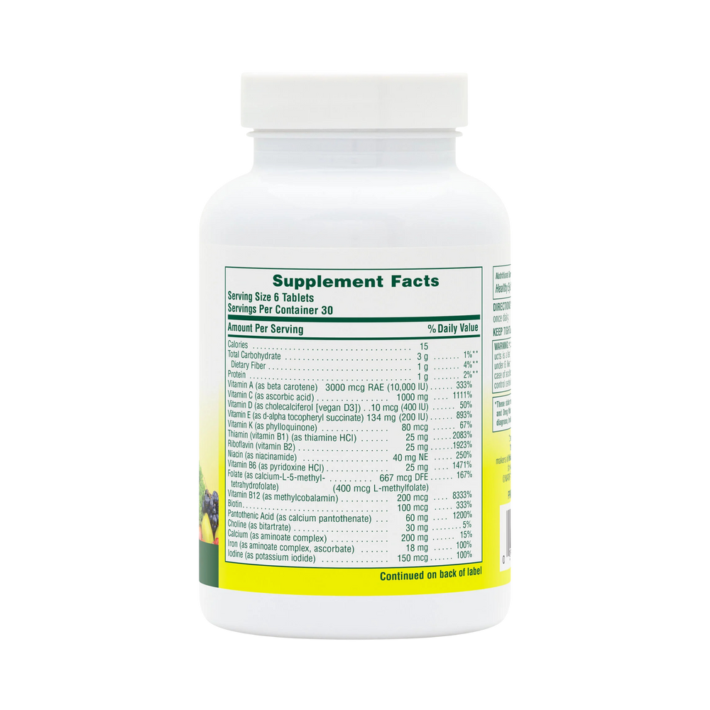Whole Food Wellness Complex Whole fruit concentrates: pea, spinach leaf, broccoli floret, cabbage leaf, parsley leaf, carrot root, banana, dandelion leaf, beet root, apricot, camu-camu (Myrciaria dubia), cranberry, peach, red raspberry, strawberry, tomato, onion bulb, celery seed, papaya fruit, garlic clove, olive fruit, orange, bilberry, black cherry, plum, pear, beet juice, apple. |
