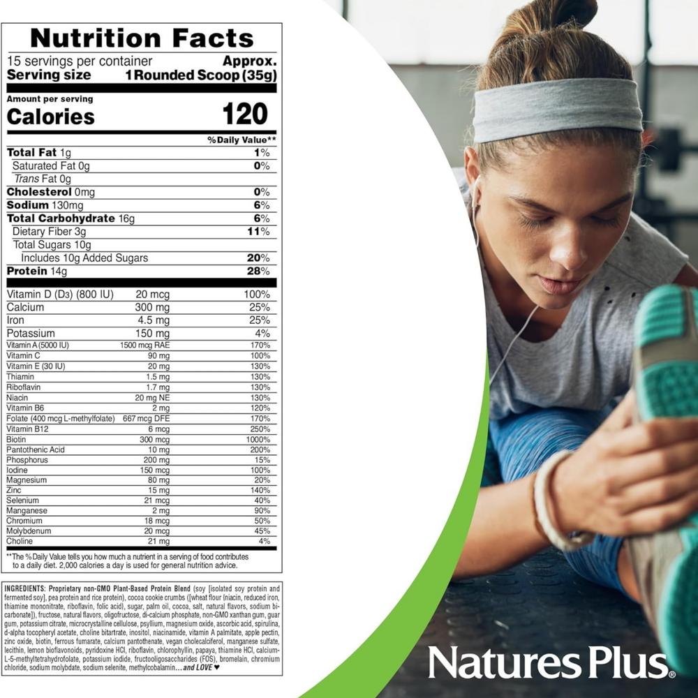 Proprietary non-gmo plant-based protein blend (soy [isolated soy protein and fermented soy], pea protein and rice protein), cocoa cookie crumbs ([wheat flour (niacin, reduced iron, thiamine mononitrate, riboflavin, folic acid), sugar, palm oil, cocoa, salt, natural flavors, sodium bi-carbonate]), fructose, natural flavors, oligofructose, di-calcium phosphate, non-gmo xanthan gum, guar gum, potassium citrate, microcrystalline cellulose, psyllium, magnesium oxide, ascorbic acid, spirulina, d-alpha tocopheryl acetate, choline bitartrate, inositol, niacinamide, vitamin A palmitate, apple pectin, zinc oxide, biotin, ferrous fumarate, calcium pantothenate, vegan cholecalciferol, manganese sulfate, lecithin, lemon bioflavonoids, pyridoxine hcl, riboflavin, chlorophyllin, papaya, thiamine hcl, calcium- l-5-methyltetrahydrofolate, potassium iodide, fructooligosaccharides (fos), bromelain, chromium chloride, sodium molybdate, sodium selenite, methylcobalamin ... and love