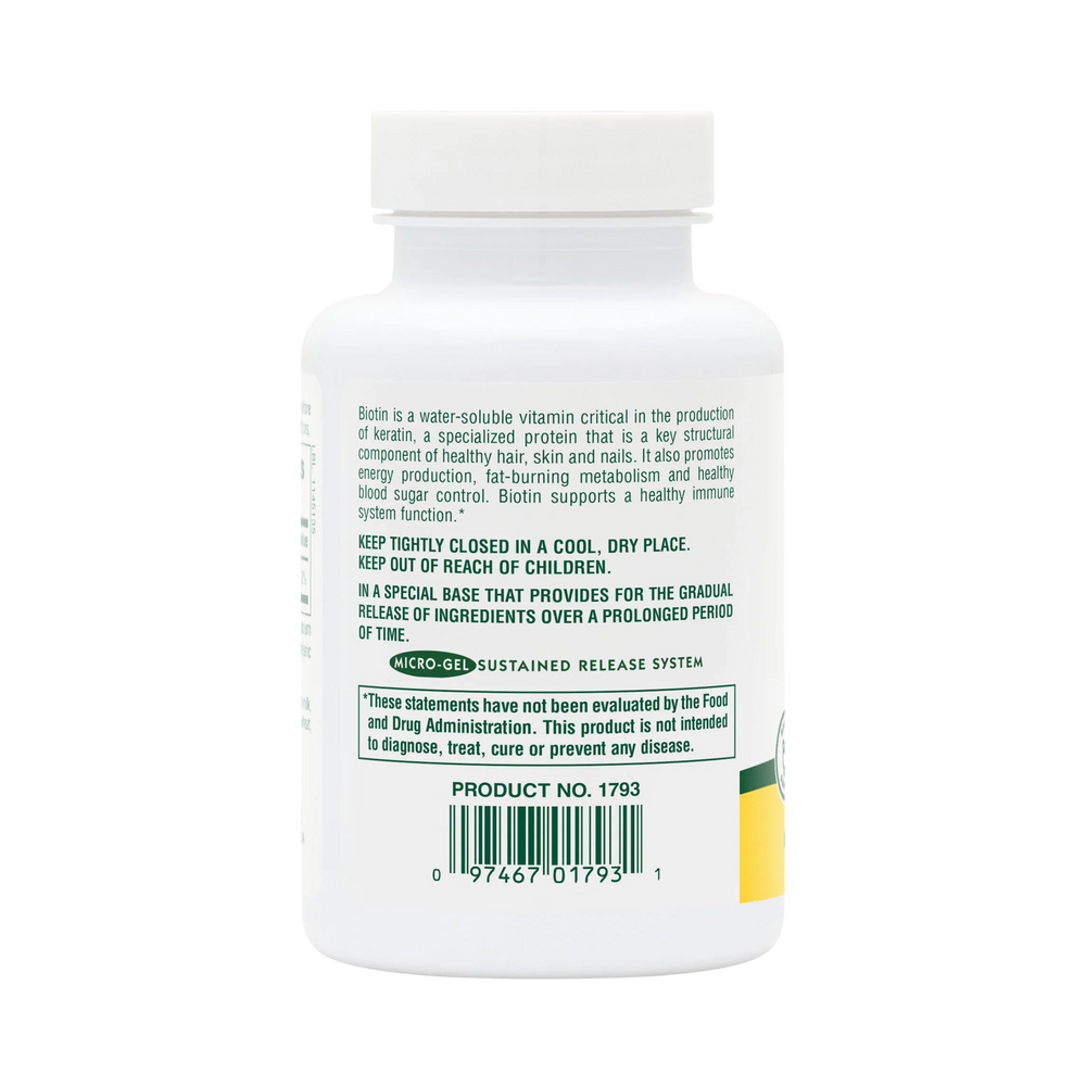 Biotin is a water-soluble vitamin critical in the production of keratin, a specialized protein that is a key structural component of healthy hair, skin and nails. It also promotes energy production, fat-burning metabolism and healthy blood sugar control. Biotin supports a healthy immune system function.
