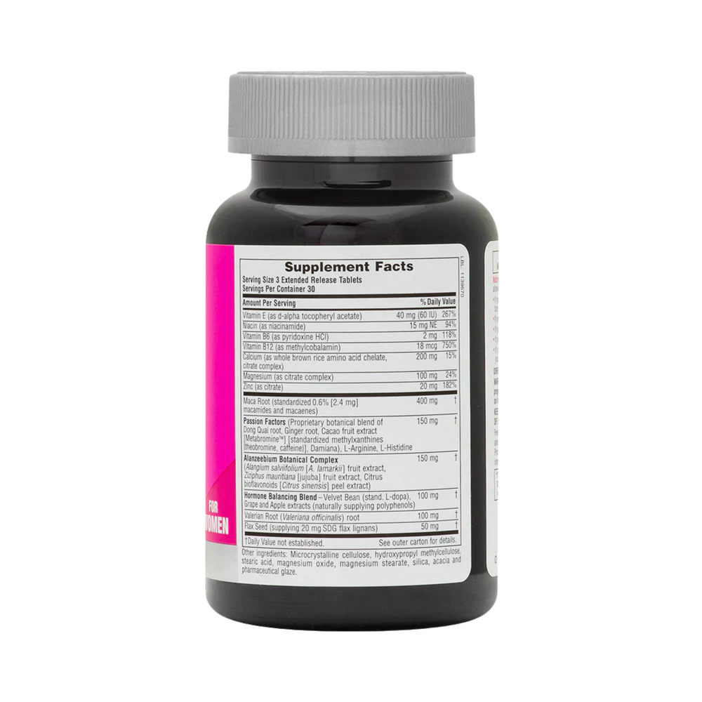Passion Factors (Proprietary botanical blend of Ginger [Zingiber officinale] root, Damiana [Turnera diffusa var.aphrodisiaca] whole herb, L-Arginine [free form amino acid], L-Histidine [free form amino acid], Dong quai [Angelica sinensis] root, Metabolic-Support Theobromine [Cacao fruit extract {Theobroma cacao} standardized methylxanthines {theobromine, caffeine}]) |