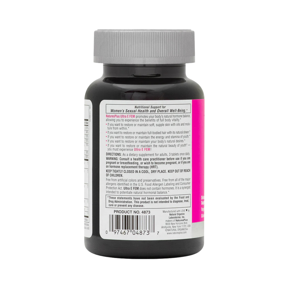 Do you want the secret to healthy, vibrant feminine energy? With added vitamins and higher strength botanicals, NaturesPlus® Ultra E FEM supports your body's normal hormone balance, allowing you to experience the benefits of full body vitality.