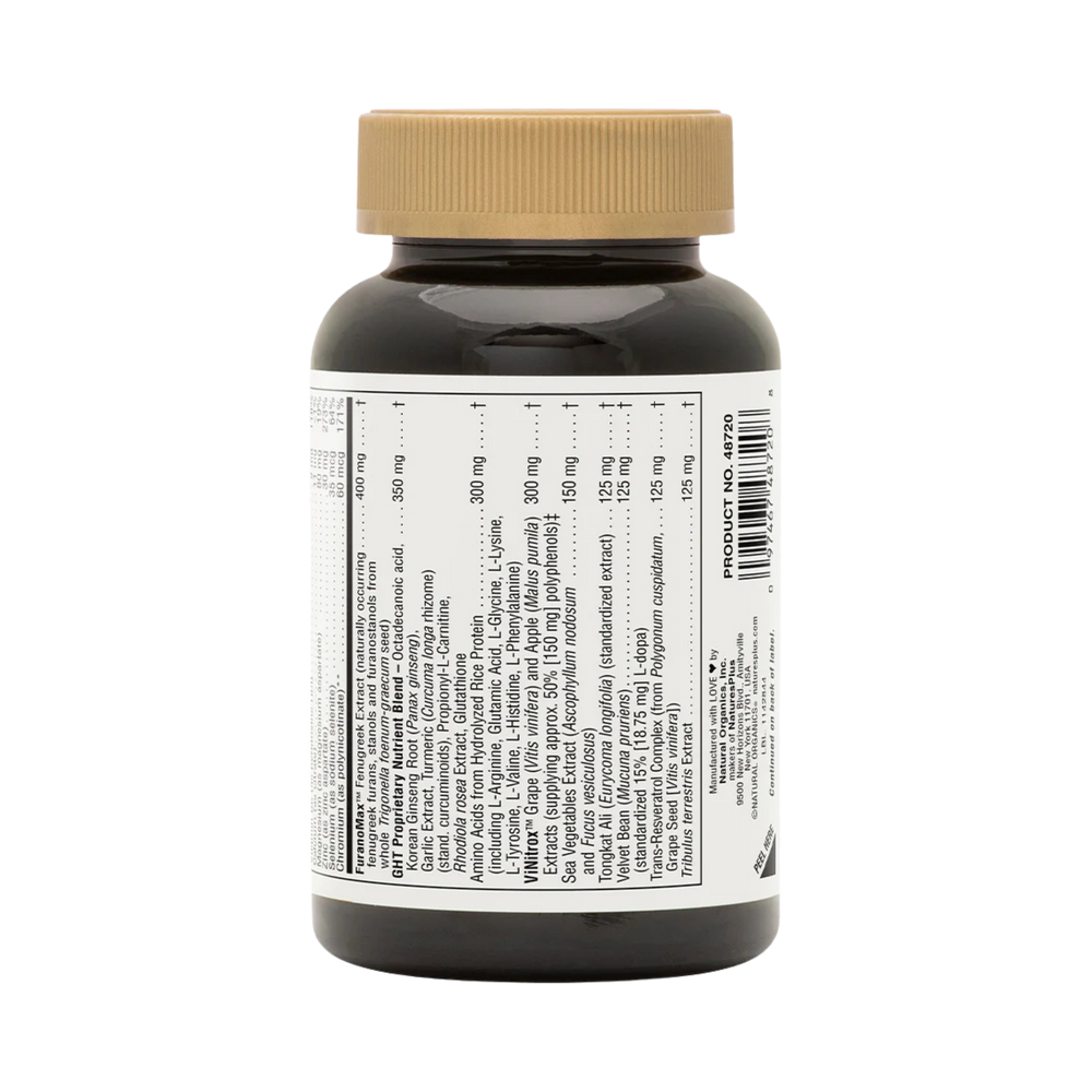 | GHT Proprietary Nutrient Blend - Octadecanoic acid, Korean Ginseng Root (Panax ginseng), Garlic extract, Turmeric (Curcuma longa rhizome) (stand. curcuminoids), Propionyl-L-carnitine, Rhodiola rosea extract, Glutathione | 350 mg | † |
