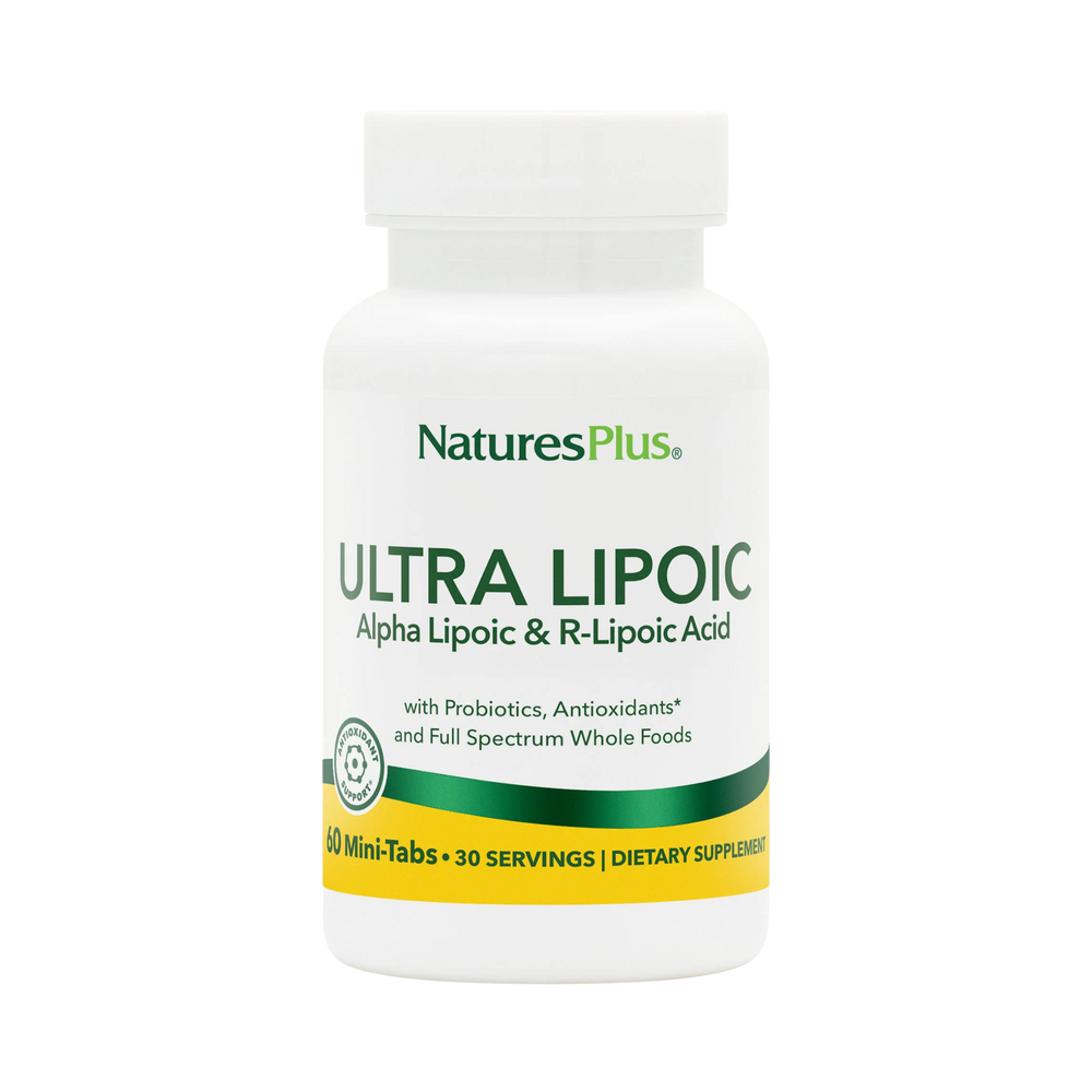 NaturesPlus provides an additional 100 mg of R-lipoic acid for even greater support, yielding an unmistakable feeling of vitality that no other lipoic acid supplement can match. NaturesPlus Ultra Lipoic is further enhanced with even more healthful probiotic strains, as well as standardized botanical extracts and proprietary whole food blends. Revolutionary bi-layered delivery provides rapid and extended lipoic acid support for unrivaled energizing, replenishing antioxidant activity.