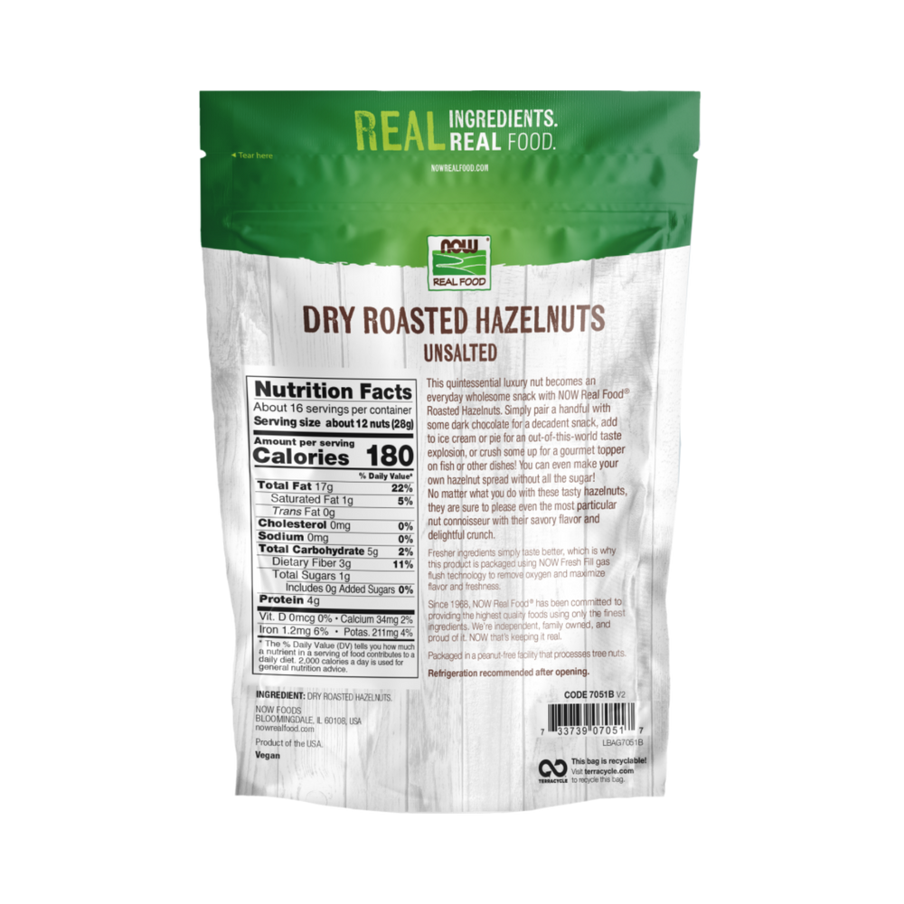 This quintessential luxury nut becomes an everyday wholesome snack with NOW Real Food® Roasted Hazelnuts. Simply pair a handful with some dark chocolate for a decadent snack, add to ice cream or pie for an out-of-this-world taste explosion, or crush some up for a gourmet topper on fish or other dishes! You can even make your own hazelnut spread without all the sugar! No matter what you do with these tasty hazelnuts, they are sure to please even the most particular nut connoisseur with their savory flavor and delightful crunch.