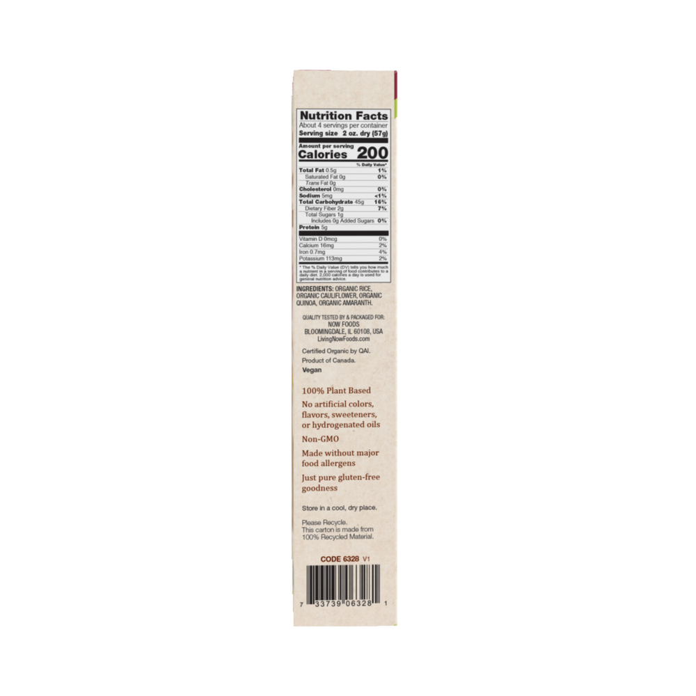 Organic rice, organic cauliflower, organic quinoa, organic amaranth.