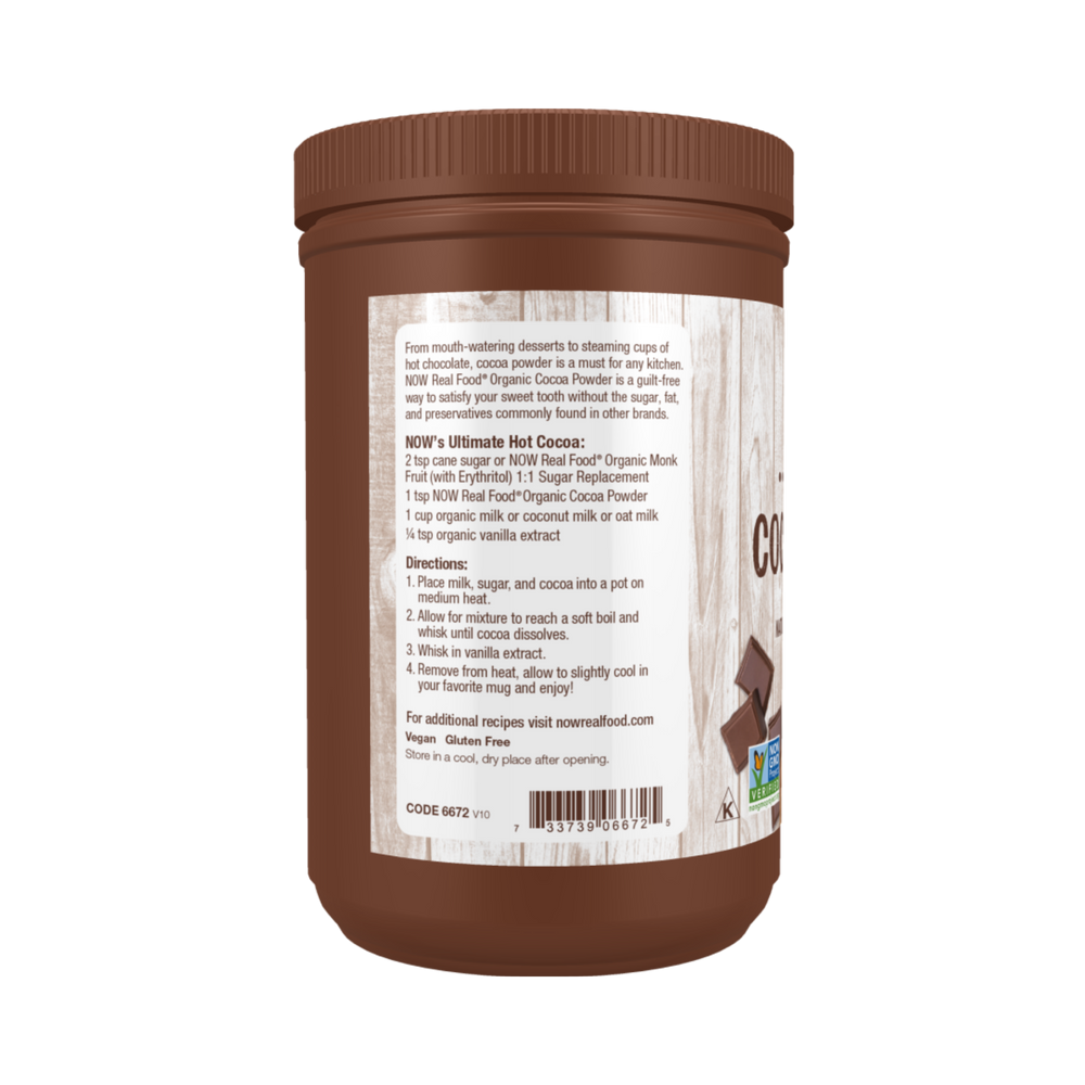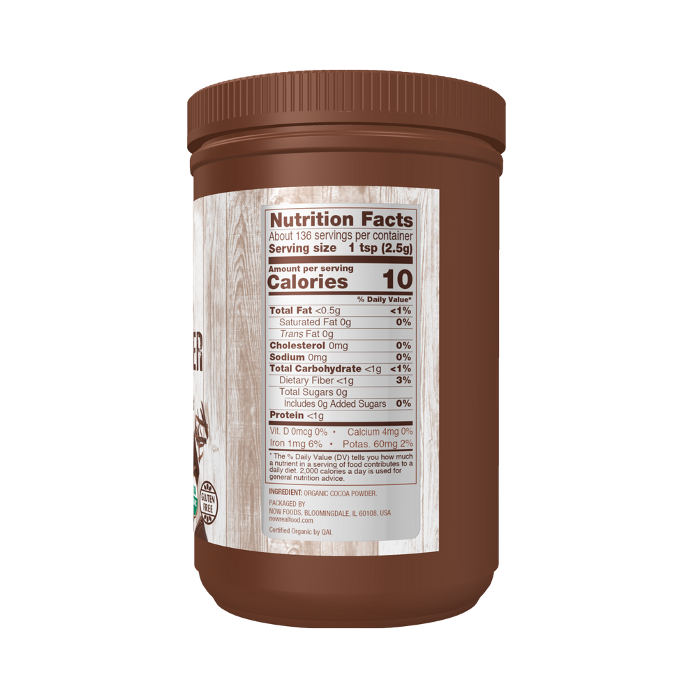From mouth-watering desserts to steaming cups of hot chocolate, cocoa powder is a must for any kitchen. NOW Real Food® Organic Cocoa Powder is a guilt-free way to satisfy your sweet tooth without the sugar, fat, and preservatives commonly found in other brands.