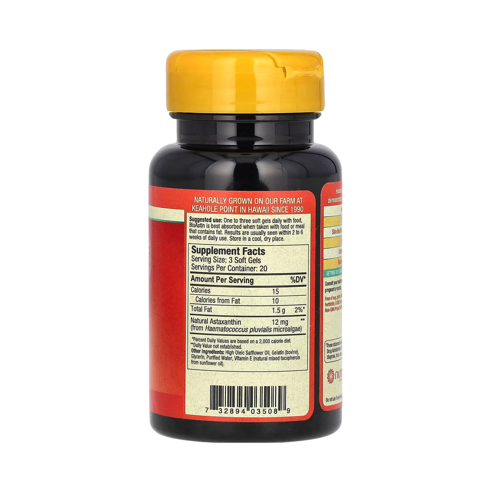 One to three soft gels daily with food, BioAstin is best absorbed when taken with food or meal that contains fat. Results are usually seen within 2 to 6 weeks of daily use.