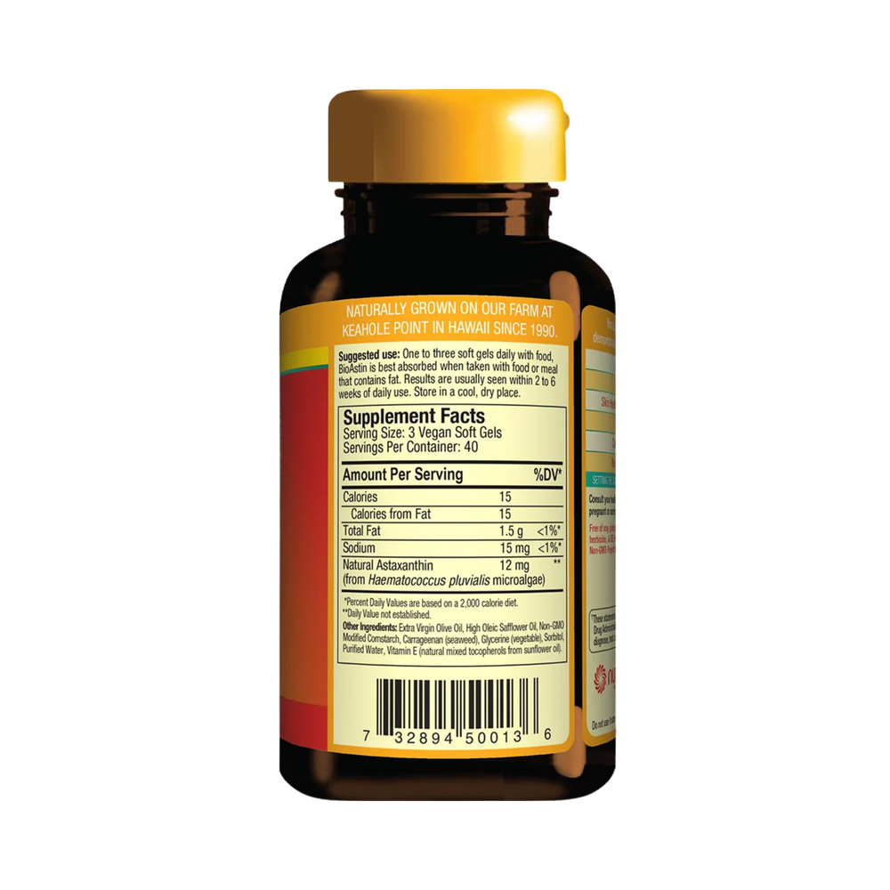 1 - 3 vegan soft gel daily with food. BioAstin is best absrobed when taken with food or a meal that contains fat. Results are usually seen within 2 to 6 weeks of daily use.