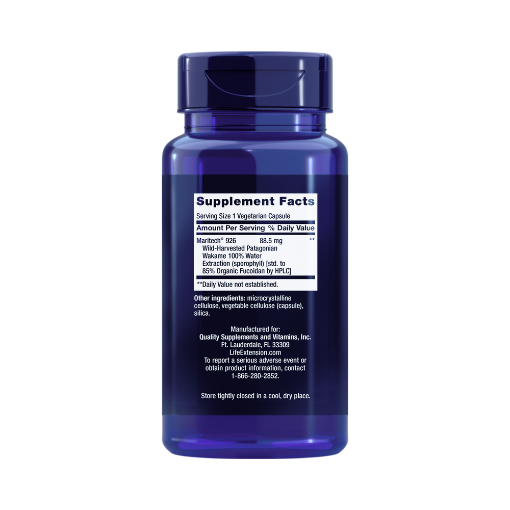 A single vegetarian capsule of Optimized Fucoidan with Maritech® 926 provides 88.5 mg of standardized Undaria pinnatifida extract, equaling the amount of fucoidan typically consumed daily in the traditional Japanese diet. Just one capsule daily is enough for most people, but more senior individuals may wish to take two.