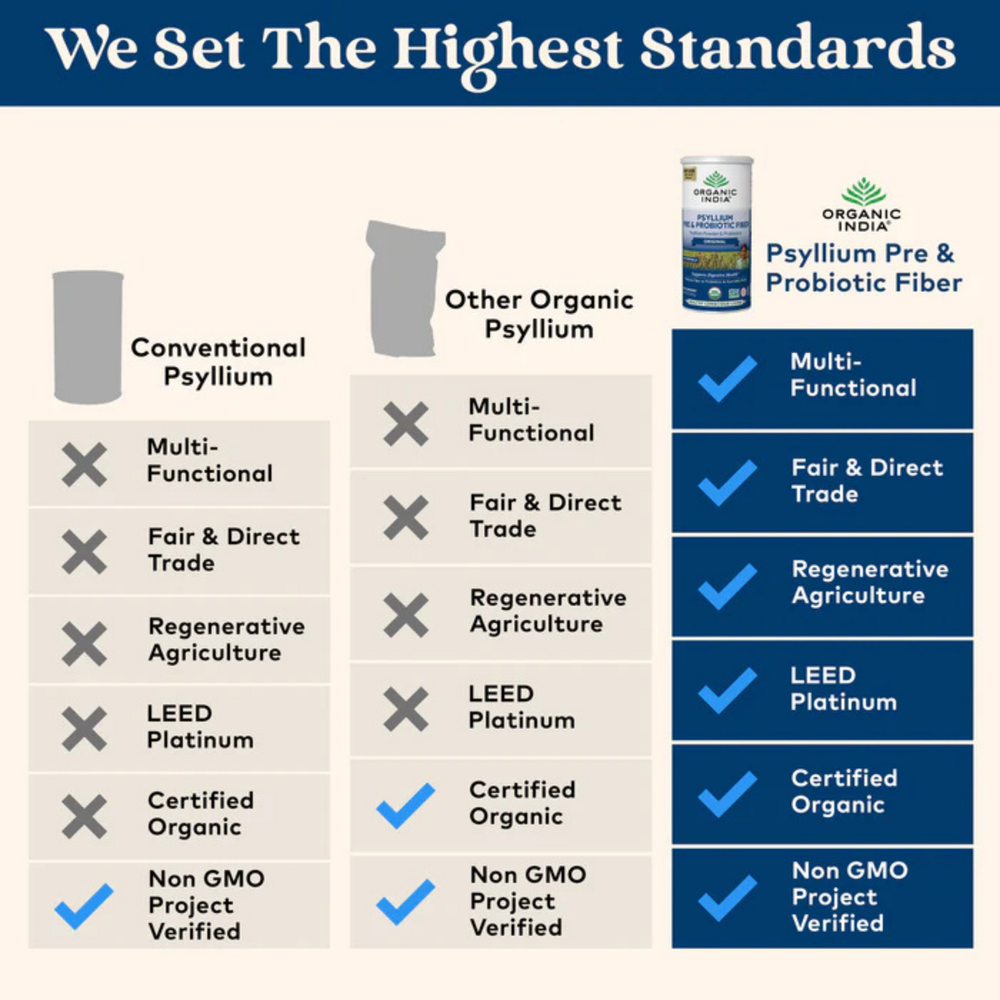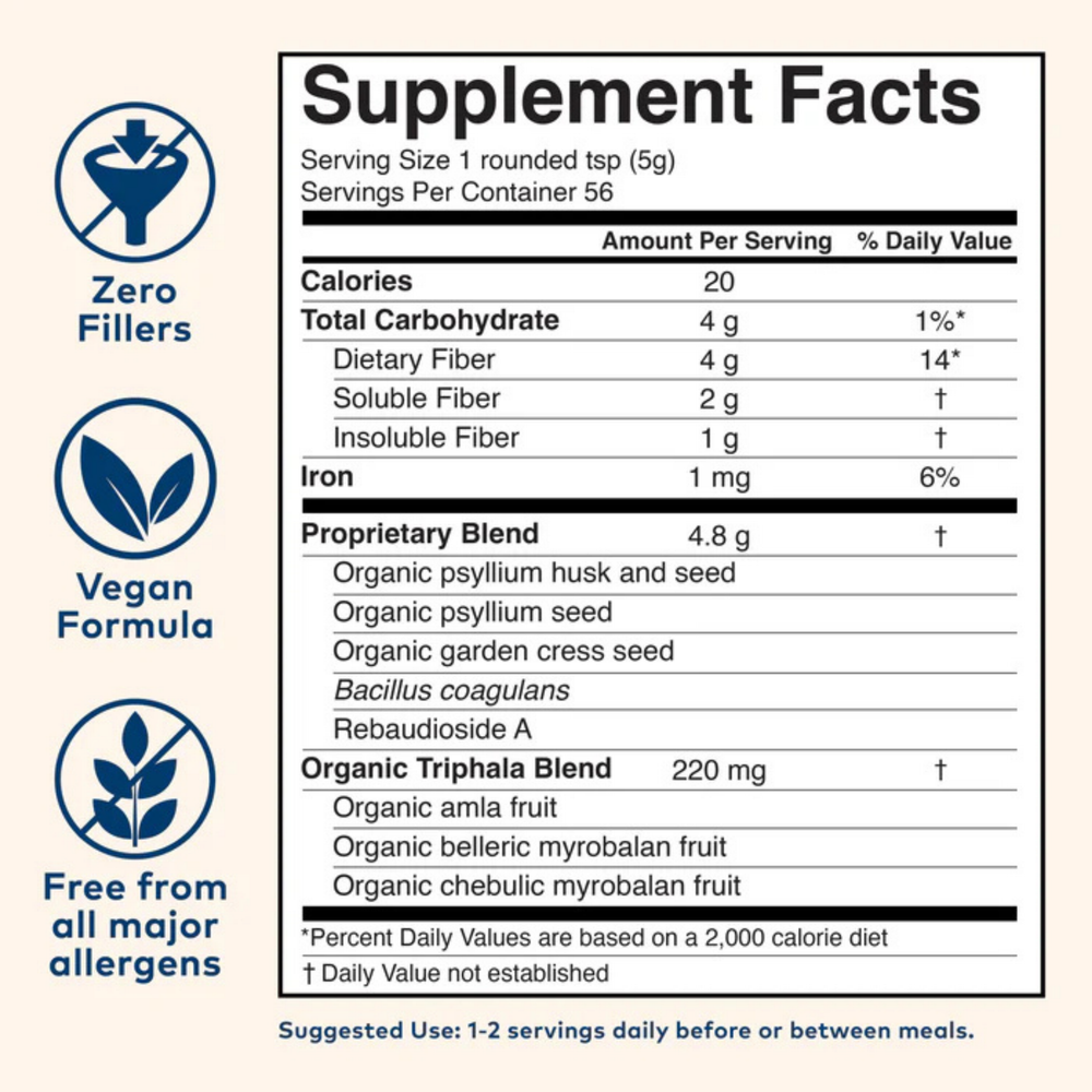 Proprietary Blend Organic psyllium husk and seed Organic psyllium seed Organic garden cress seed Bacillus coagulans Rebaudioside A |