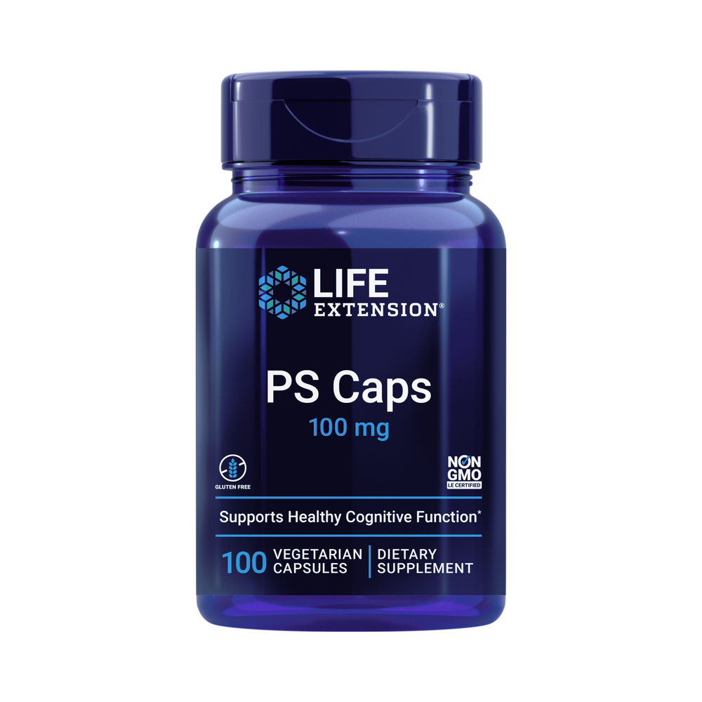 Phosphatidylserine (PS) is an essential component of healthy nerve cell membranes, and is an especially important part of the membranes of brain cells. Clinical trials have demonstrated that the phosphatidylserine in PS caps support cognitive performance, as well as memory and attention.