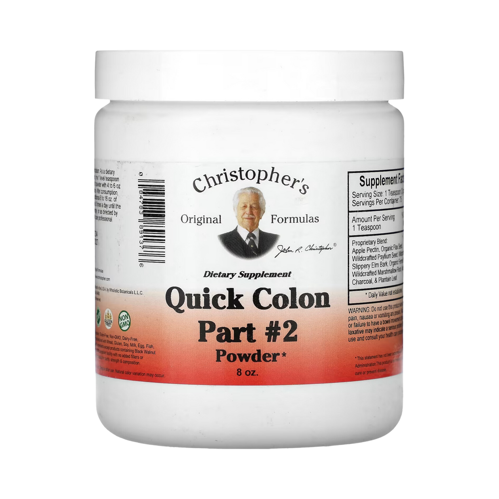 Dr. Christopher's Quick Colon #2 Powder was designed to follow the Quick Colon #1 Capsules & aids in the detoxification of the lower bowel.