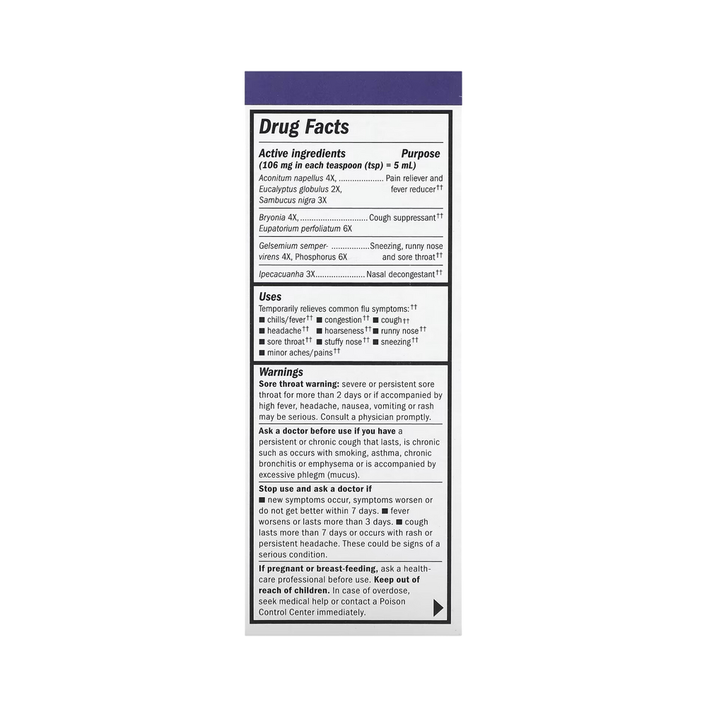 | Aconitum napellus 4X, Eucalyptus globulus 2X, Sambucus nigra 3X | Pain reliever and fever reducer |