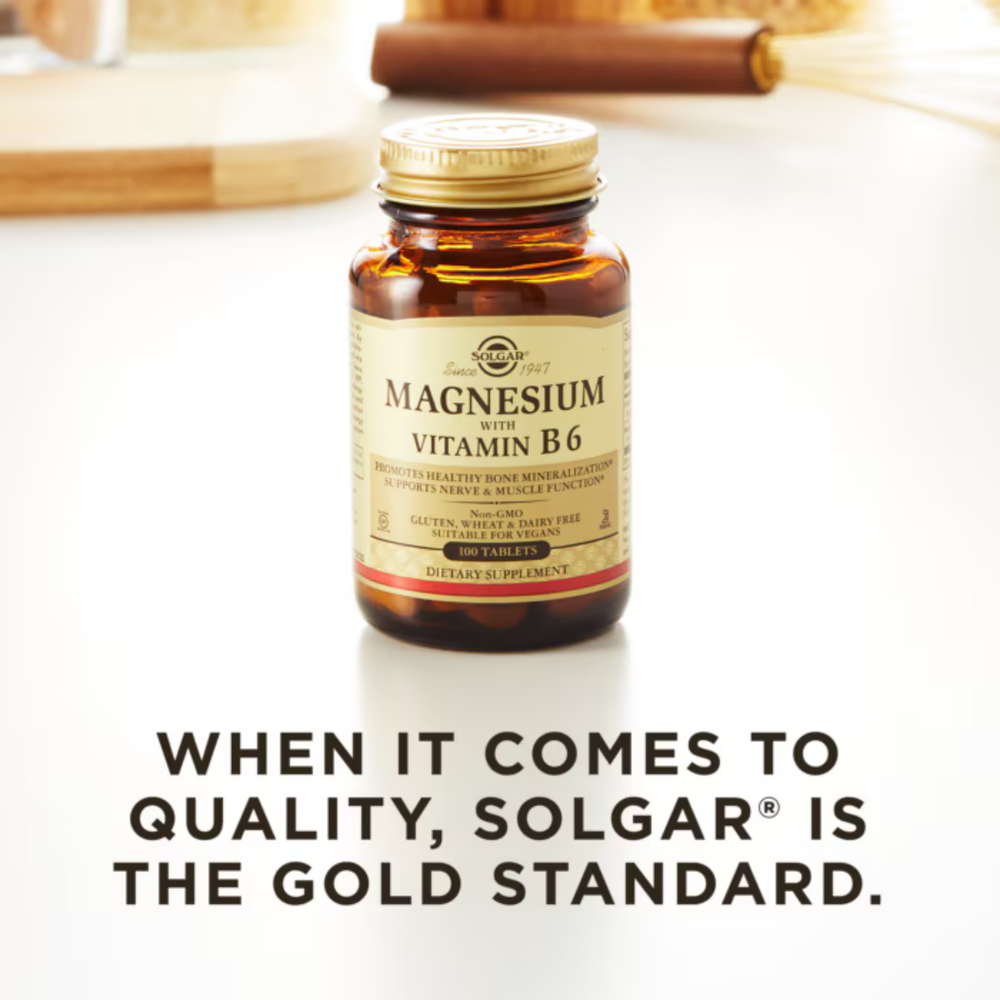 Magnesium helps to regulate calcium transport and absorption. By stimulating the secretion of calcitonin, it aids the influx of calcium into bone and promotes optimal bone mineralization. Along with ATP, magnesium supports cellular energy release. It also promotes nerve and muscle function. This formulation offers Vitamin B6 to support energy metabolism and nervous system health in the body.