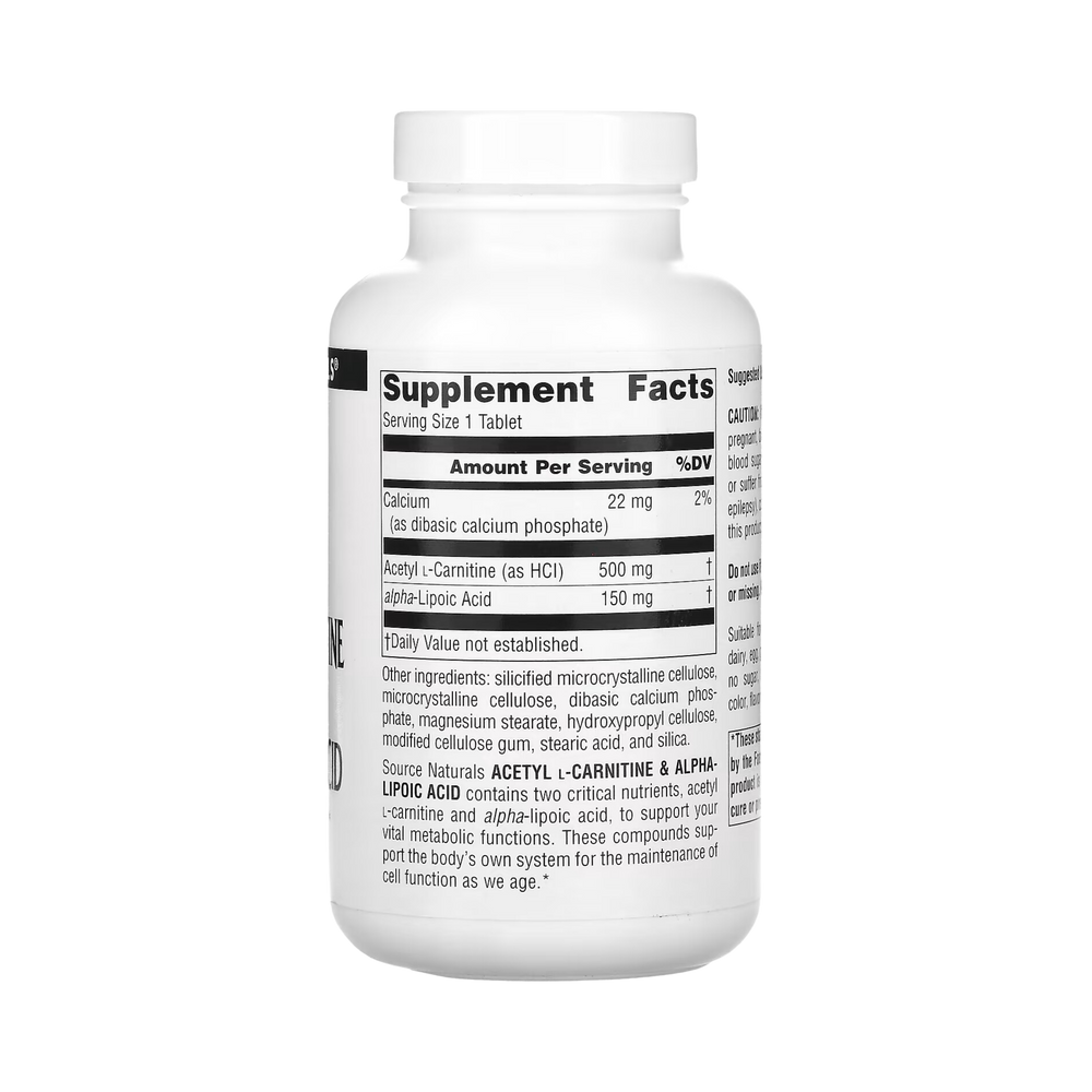 Source Naturals, Acetyl L-Carnitine & Alpha-Lipoic Acid, 650 Mg, 120 Tabs