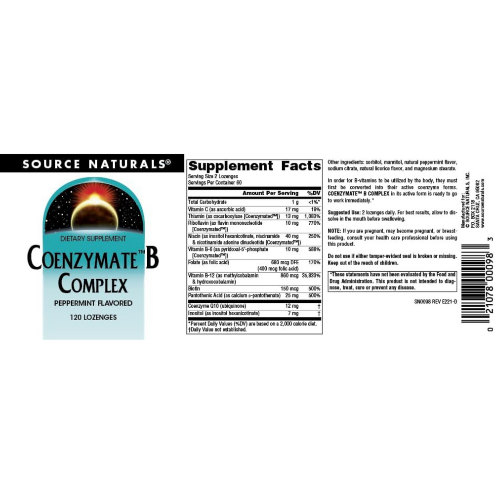 Source Naturals, Coenzymate B Complex, 120 Peppermint Lozenge