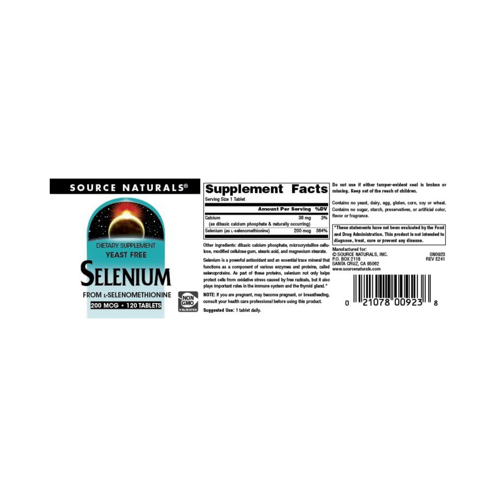 Source Naturals, Selenium, Yeast Free, 200 Mcg, 120 Tablets