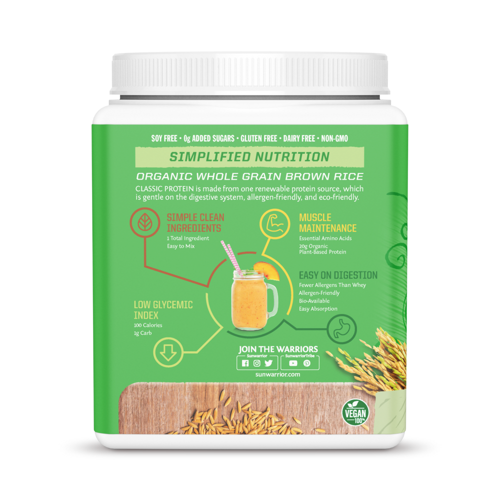 Classic protein relies on the simple power of whole-grain brown rice, including the endosperm and bran, to create a gentle protein that is easy to digest and assimilate.