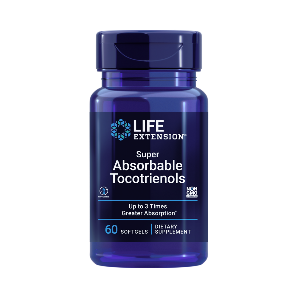 Life Extension's Super-Absorbable Tocotrienols softgels deliver high-quality vitamin E tocotrienols derived from red palm oil from the Elaeis guineensis tree. Because of their specific chemical structure, tocotrienols provide potent antioxidant benefits throughout the body.
