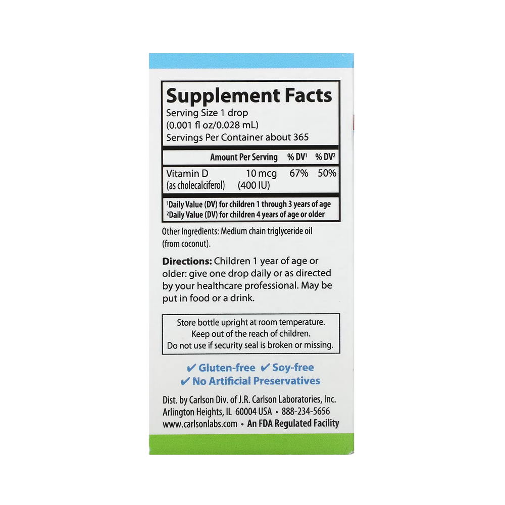 Carlson, Kids Super Daily D3, 10 Mcg (400 IU), 0.35 Fl Oz