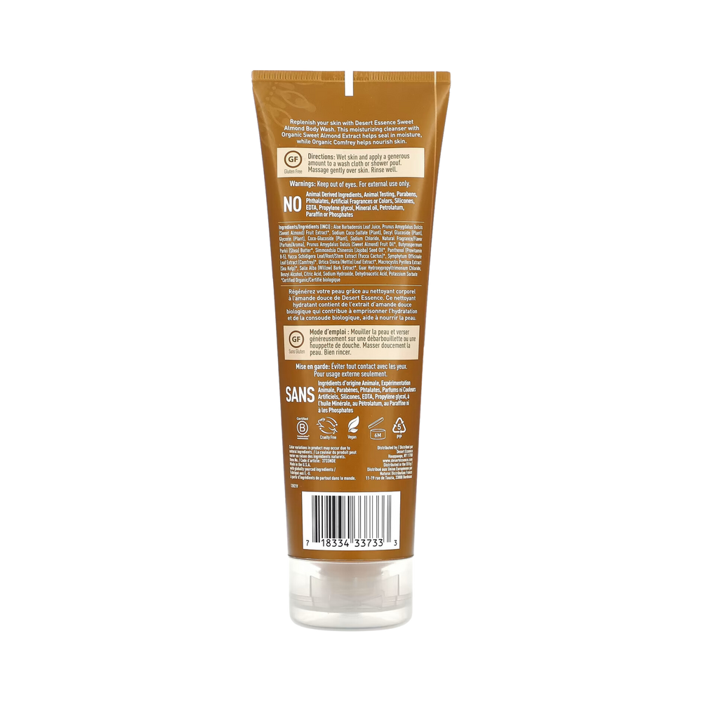 Vitamin-packed and full of fatty acids, this moisture-replenishing almond body wash enlists plant-derived cleansers to rinse away impurities in the gentlest possible way. Organic Sweet Almond Oil seals in moisture, while Organic Comfrey helps nourish dry skin. Leaves skin feeling soft, fresh and lightly scented with real Sweet Almond.