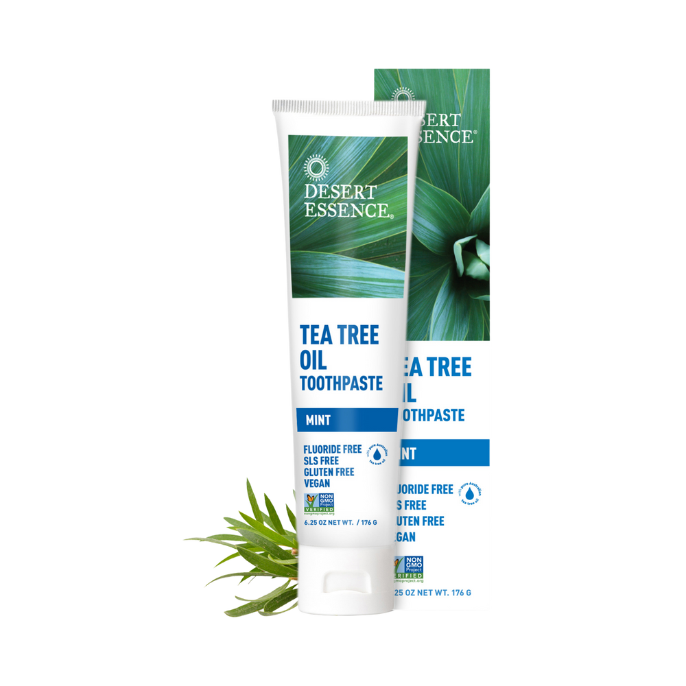 Plant-based extracts give this fluoride-free tea tree oil toothpaste its inherent cleansing power. Baking Soda and Sea Salt gently helps to scrub away plaque, while Australian Eco-Harvest® Tea Tree Oil helps fight cavity-forming sugar acids. Leaves teeth sparkling clean and breath freshly scented with Pure Mint Oil.