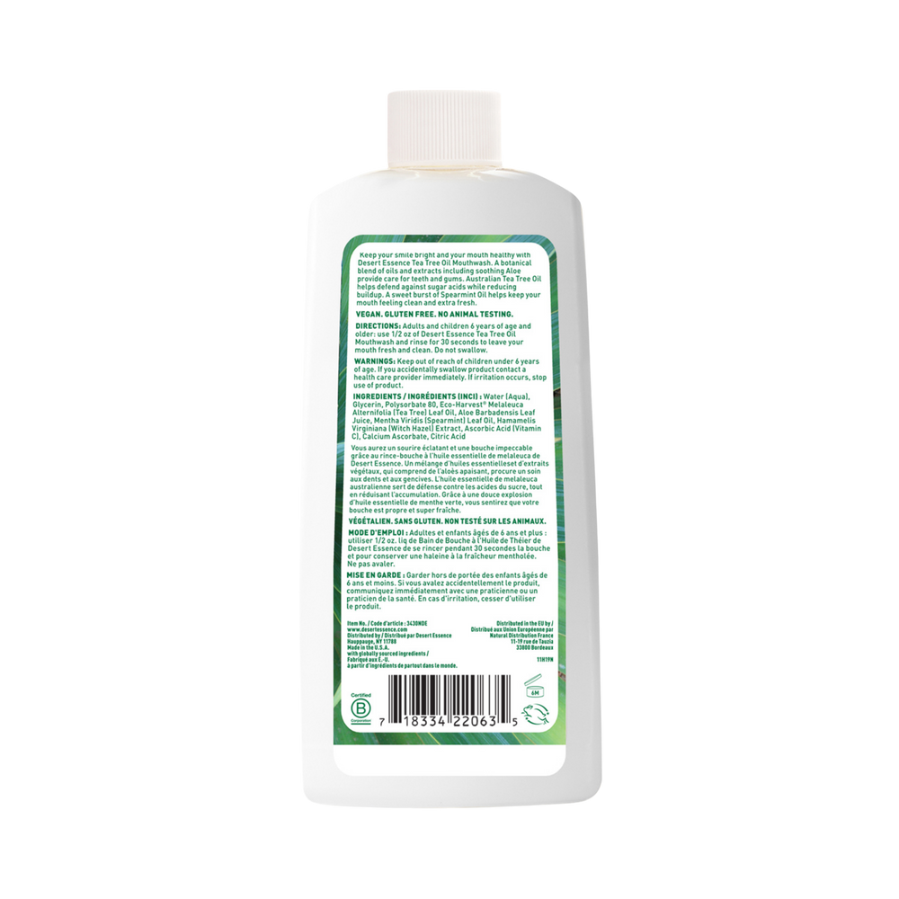 Sugar and alcohol-free mouthwash formulated with Pure Australian Eco-Harvest® Tea Tree Oil and Aloe. Provides botanical care for teeth and gums, while freshening breath with sweet flavor of Spearmint Oil.