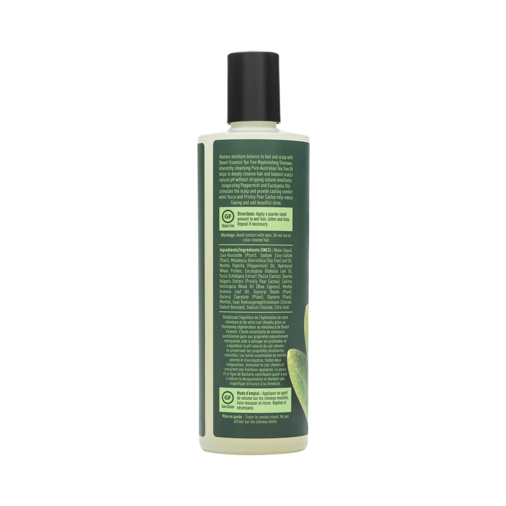 The foundation of this deep-cleansing shampoo is pure Tea Tree Oil, harvested from sustainably farmed fields in the arid plains of eastern Australia. Tea Tree Oil’s pure potency mixes with invigorating Peppermint Oil to stimulate and soothe the scalp, leaving a refreshing tingle and a clean, fresh scent. Soothing Yucca Cactus harvested from succulent desert plants moisturizes to create a smooth, shiny finish. Together, this medley of botanicals gently removes impurities to leave hair with a beautiful shine.