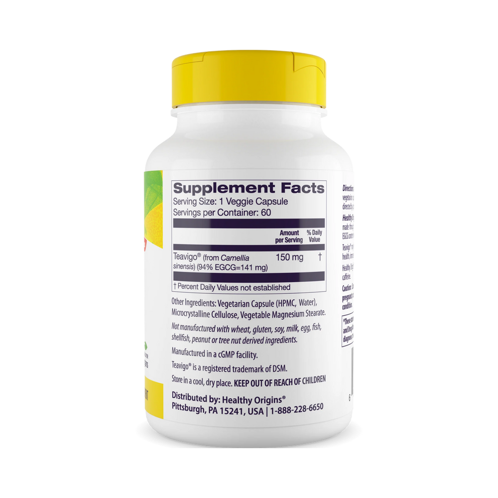 Teavigo® is a natural green tea extract made through a proprietary, patented production process which increases EGCG content while minimizing impurities. Healthy Origins® Teavigo® is free of herbicides, pesticides, and caffeine.