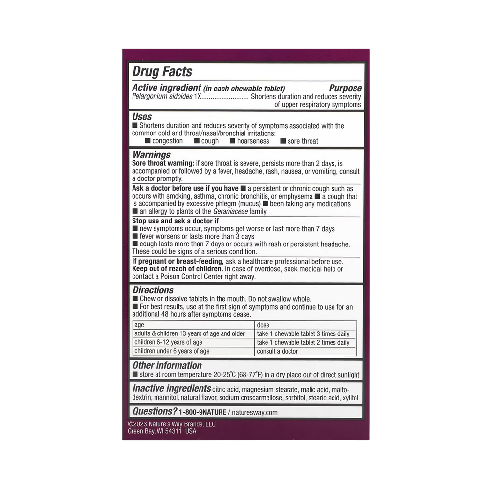 This magical ingredient is rich with its nutrients value so much that it can easily be effective for kids cough, congestion, plus throat, nasal, and bronchial irritation. So, Nature's Way, Umcka ColdCare Kids chewables are the absolute solution for kids' cough and cold with delicious non- drowsy cherry flavour.