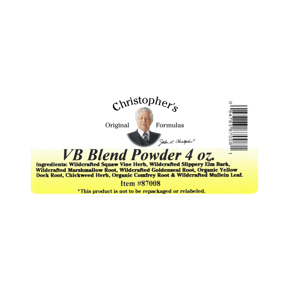 Dr. Christopher's VB (Vaginal Bolus) Powder aids malnourished organs & supports elimination of toxins.