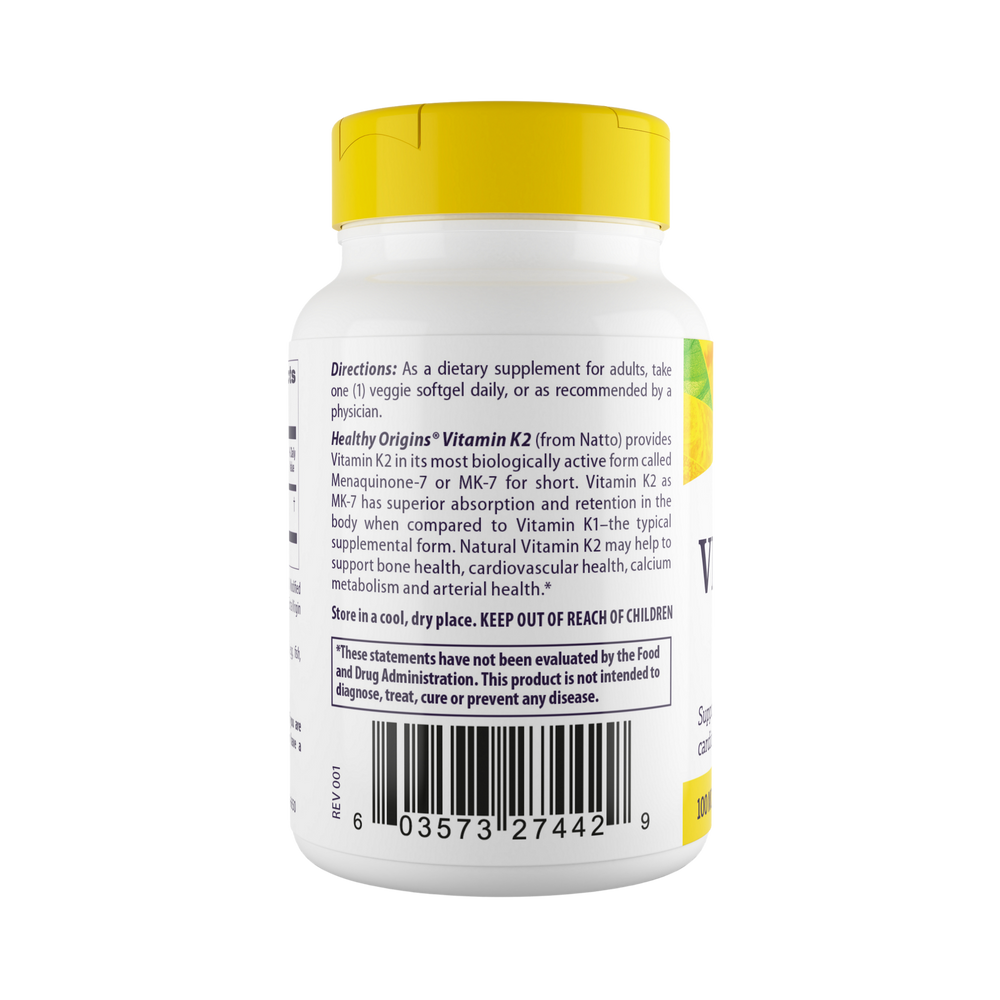 Healthy Origins® Vitamin K2 (from Natto) provides Vitamin K2 in its most biologically active form called Menaquinone 7 or MK-7 for short. Vitamin K2 as MK-7 has superior absorption and retention in the body when compared to K1 - the typical supplemental form. Natural Vitamin K2 may help to support bone health, cardiovascular health, calcium metabolism and arterial health.