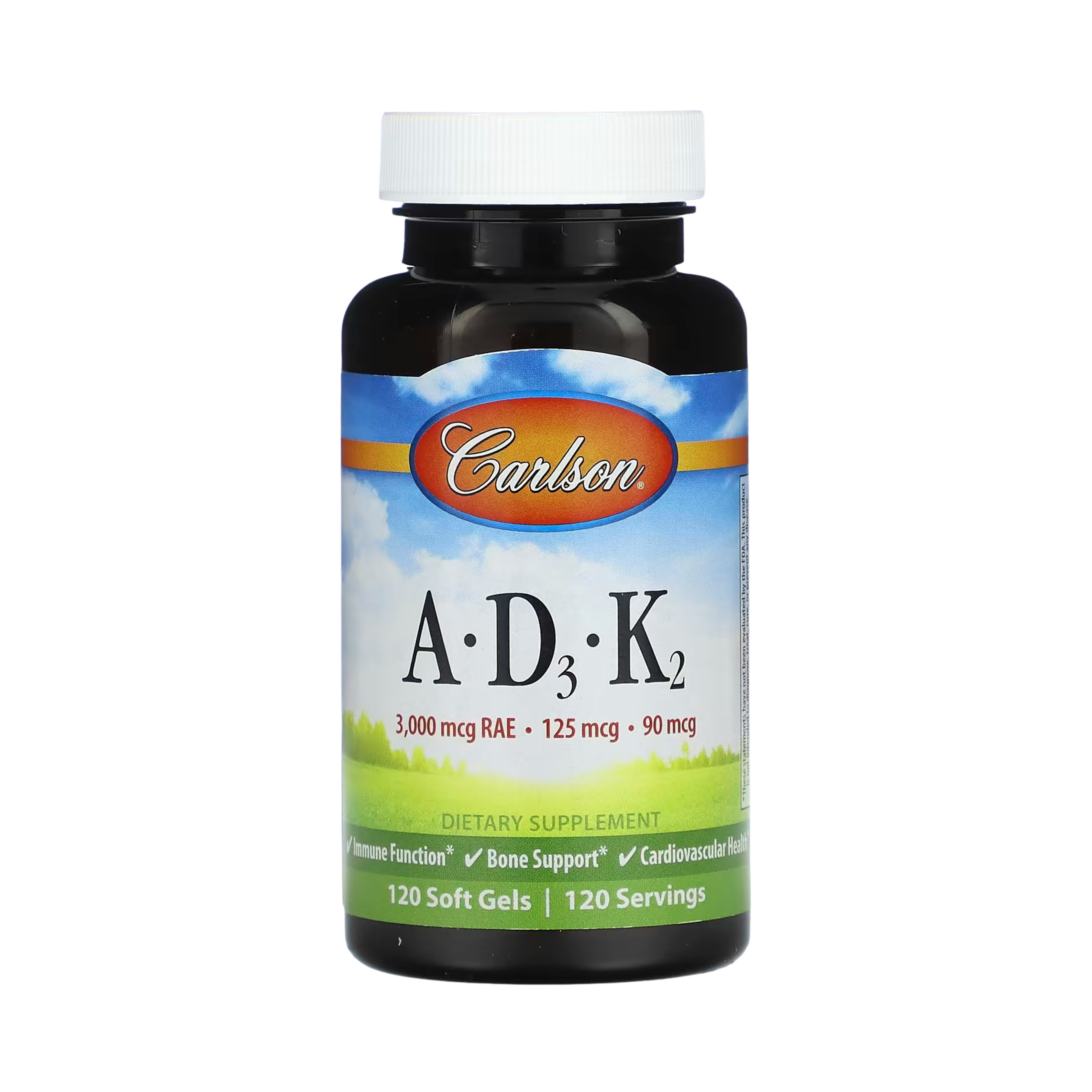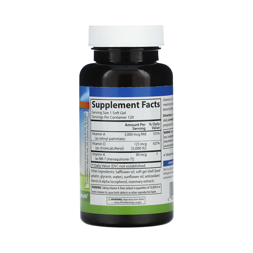 Vitamins A, D3, and K2 work together to maximize cardiovascular and immune health, bone building, and calcium utilization.