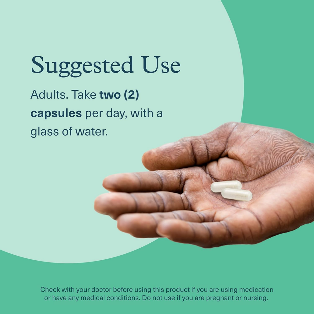 Suggested Use: (Adults) The recommended dosage is two capsules per day. But for more personalized results, start with one capsule per day and slowly ramp up (adding an additional capsule per da as needed) until you feel the effects are right for you. Use daily for optimal results.