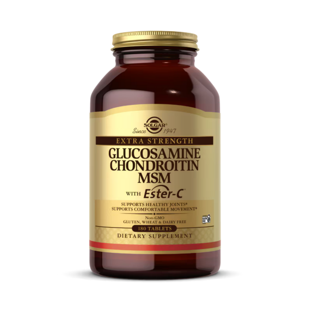 Solgar® Extra Strength Glucosamine Chondroitin MSM with Ester-C® Tablet is ideal for anyone seeking extra nutritional support for their cartilage and joints. This formula is specially designed to nourish your joints and cartilage, bring fluid into the joints and helps maintain flexibility, mobility and comfortable movement. This formula also contains Ester-C® to support joint health by helping to maintain enzymes necessary for collagen formation in their active state.