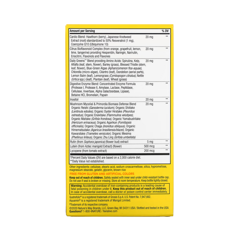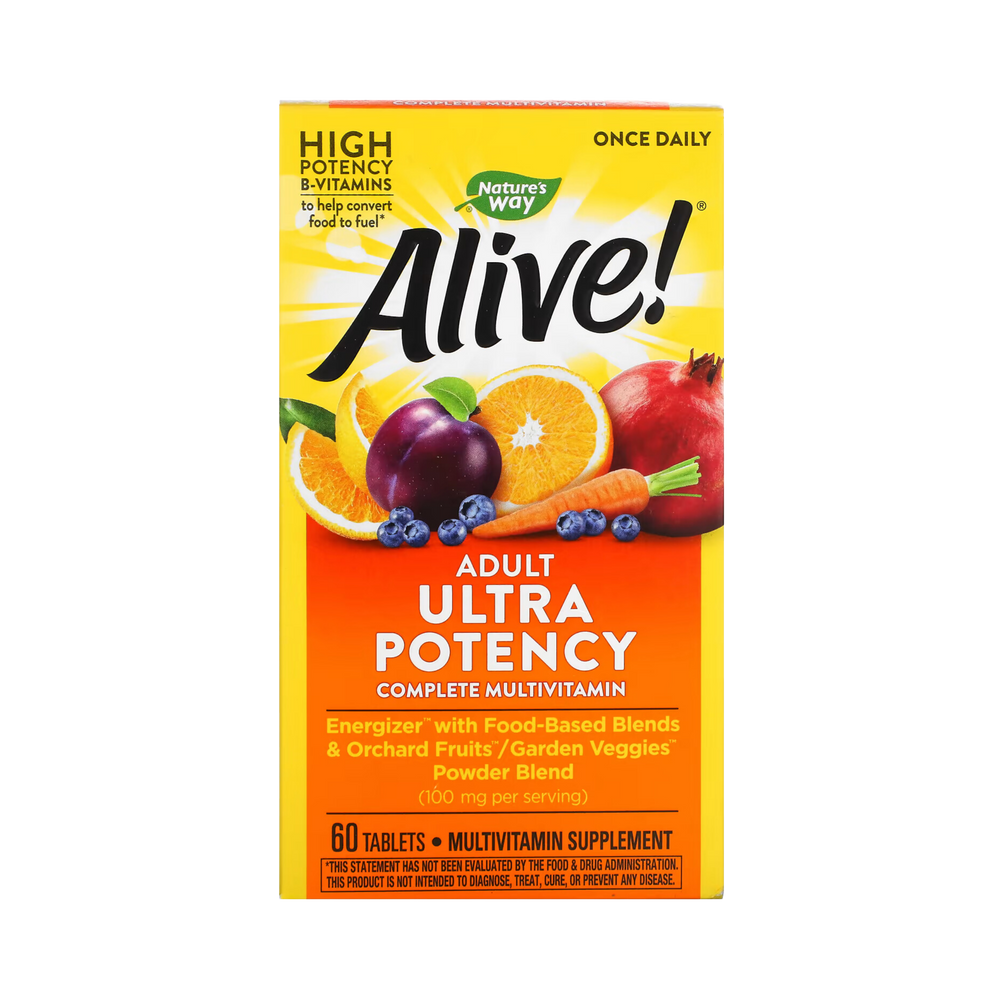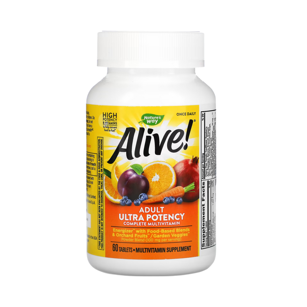 This all-in-one high potency multivitamin tablets are formulated specially for getting daily energy support whole body nutrition. It contains essential nutrition to support energy metabolism, bone health, heart health, immune health, muscle function, and eye health, Ultra B-Vitamins for Cellular Energy. So, Nature's Way, Alive! Adult Ultra Potency Complete Multivitamin tablets are considered as energizer with food based blends.