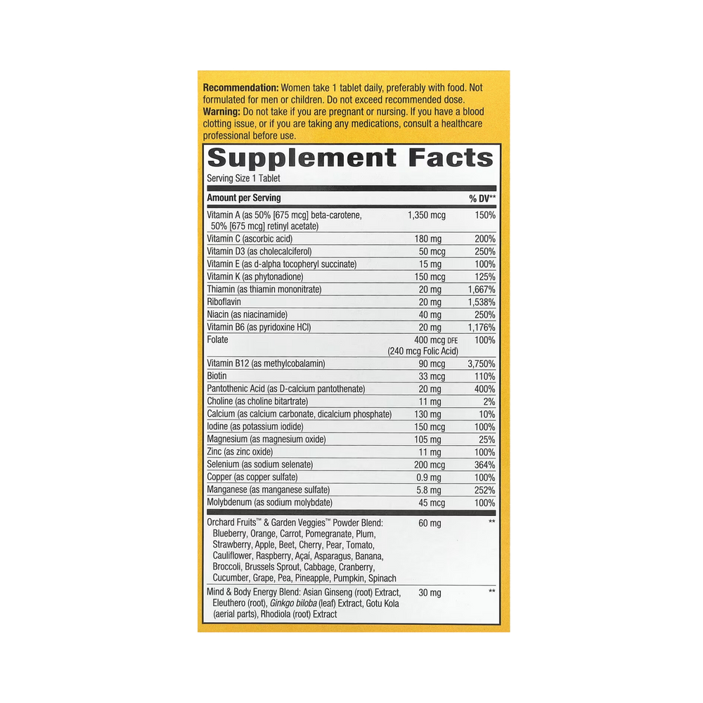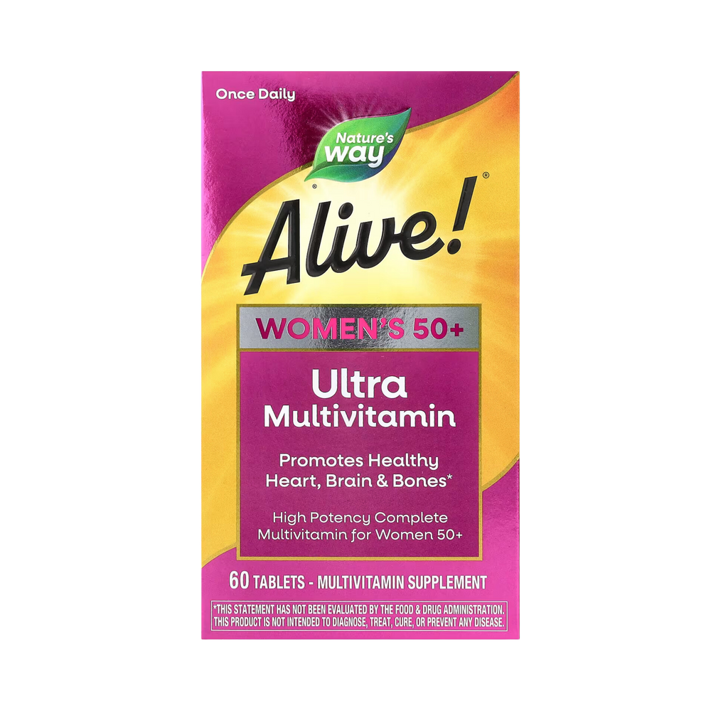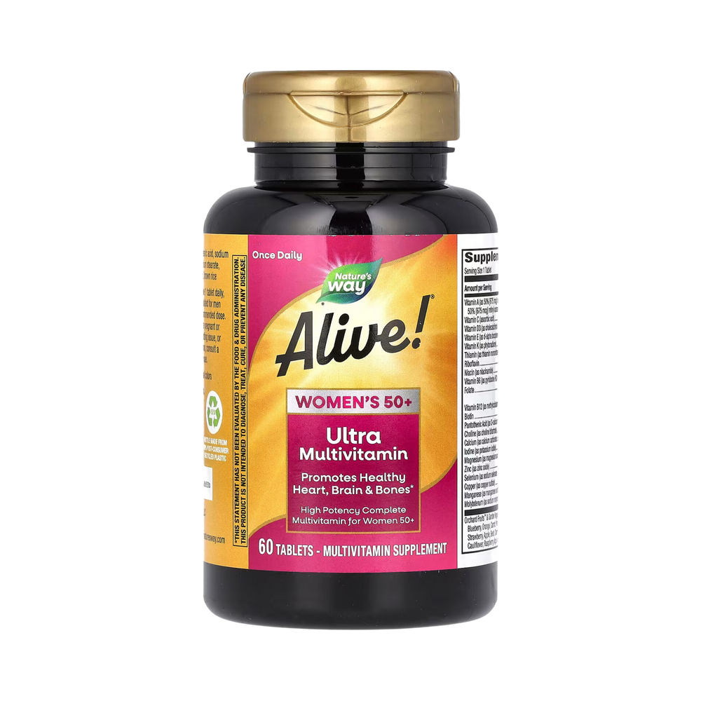 This all-in-one high potency multivitamin tablets are formulated specially for women of 50+ to support whole body nutrition. It contains essential nutrition to support bone, eye, heart, skin, and immune health, plus energy metabolism., Ultra B-Vitamins for Cellular Energy. So, Nature's Way, Alive! Women’s 50+ Ultra Potency Multivitamin tablets are considered as a complete multivitamin.