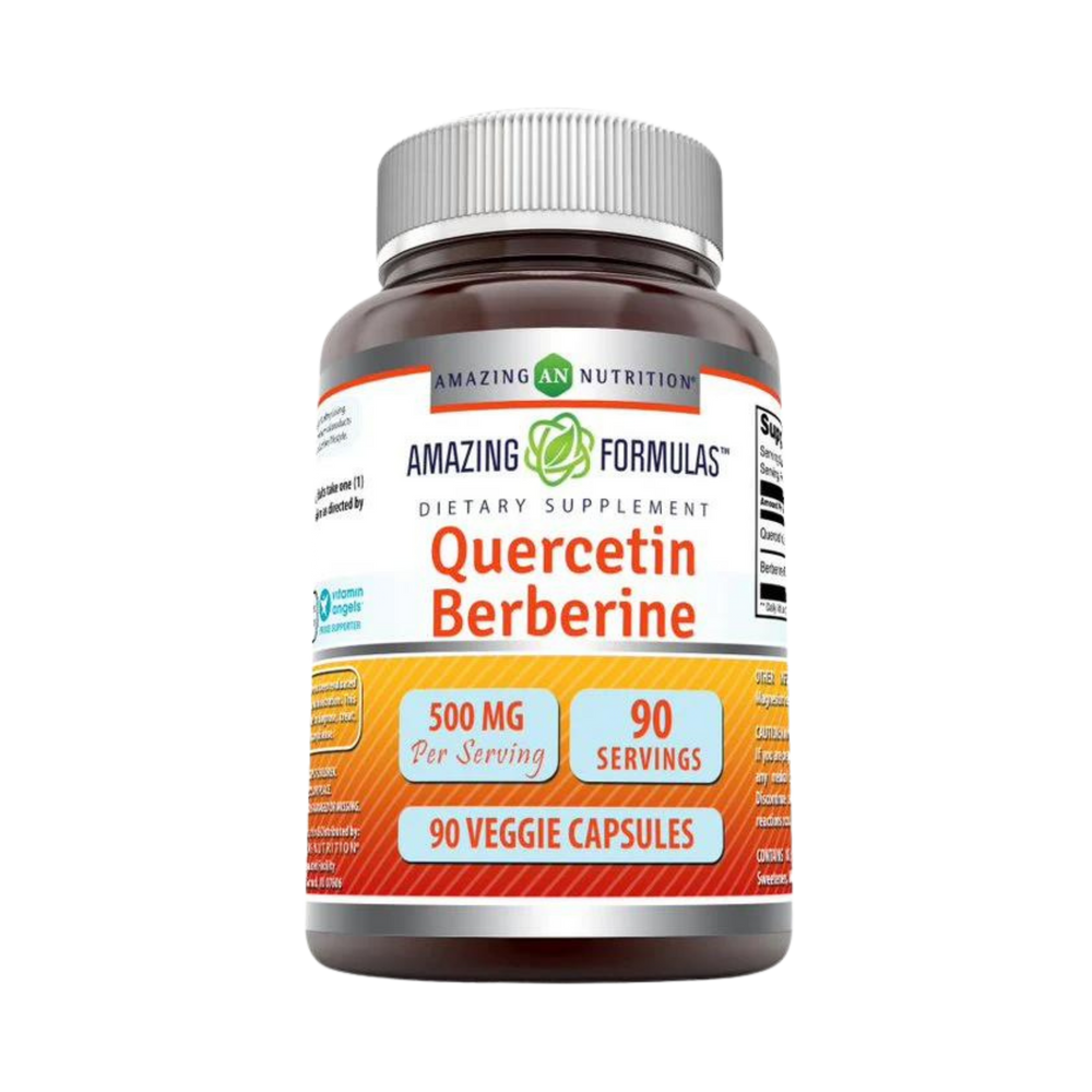 Berberine is a botanical compound and a powerful antioxidant with numerous health benefits. While Quercetin is also a botanical compound and a potent flavonoid, which increases the absorption and potency of Berberine. The combination of two creates a powerful synergistic relation which may provide numerous health benefits. *