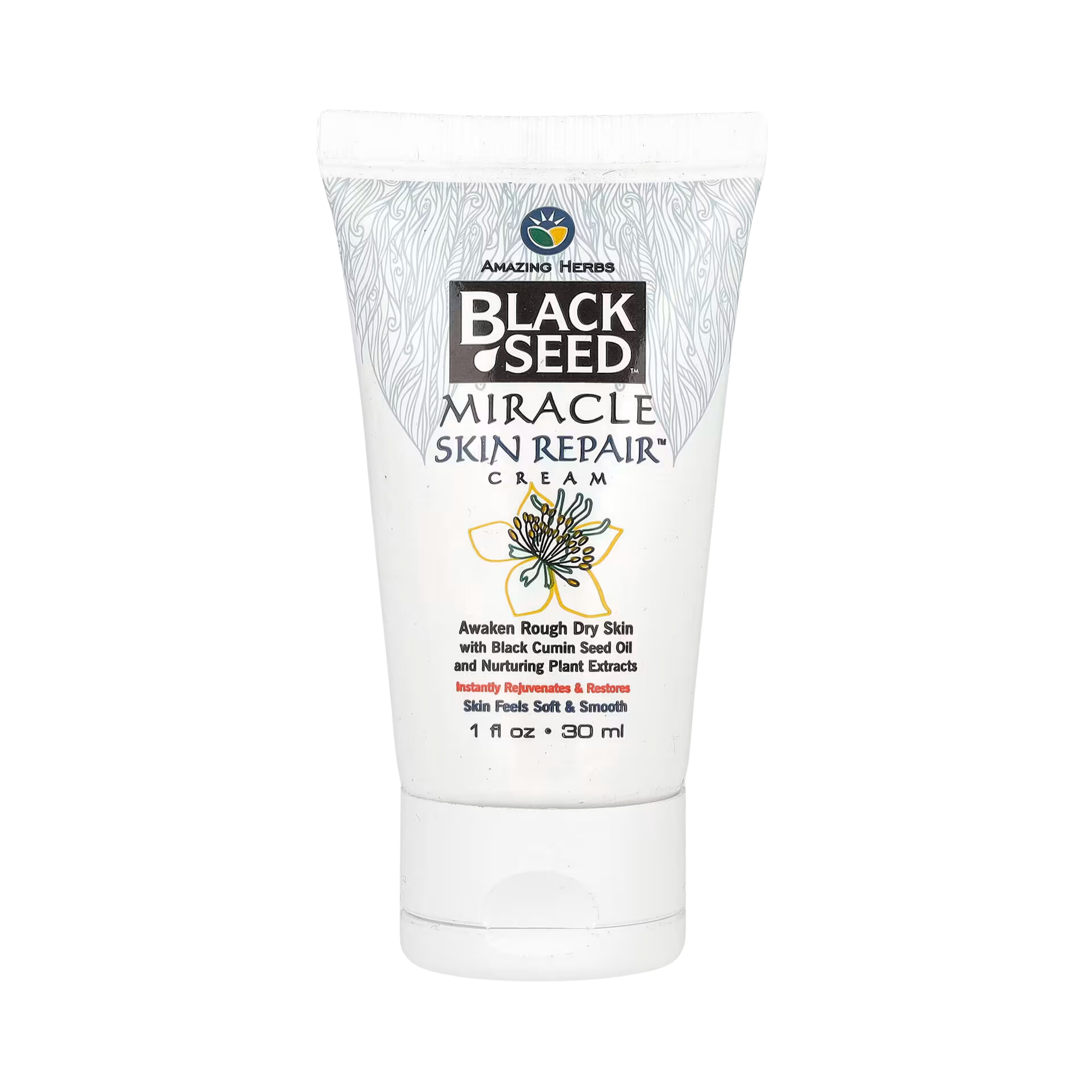 Amazing Herbs has harnessed the incredible healing and soothing powers of Black Cumin Seed oil. Rich in EFA's, this remarkable natural ingredient has been used for centuries to promote healthy skin and restore Its natural balance. Formulated with nurturing plant extracts, Black Seed Miracle Skin Repair™ cream helps soothe irritated, rough, dry skin. Natural moisturizers instantly rejuvenate and help strengthen the skin's natural barrier to keep skin feeling smooth and soft all day.