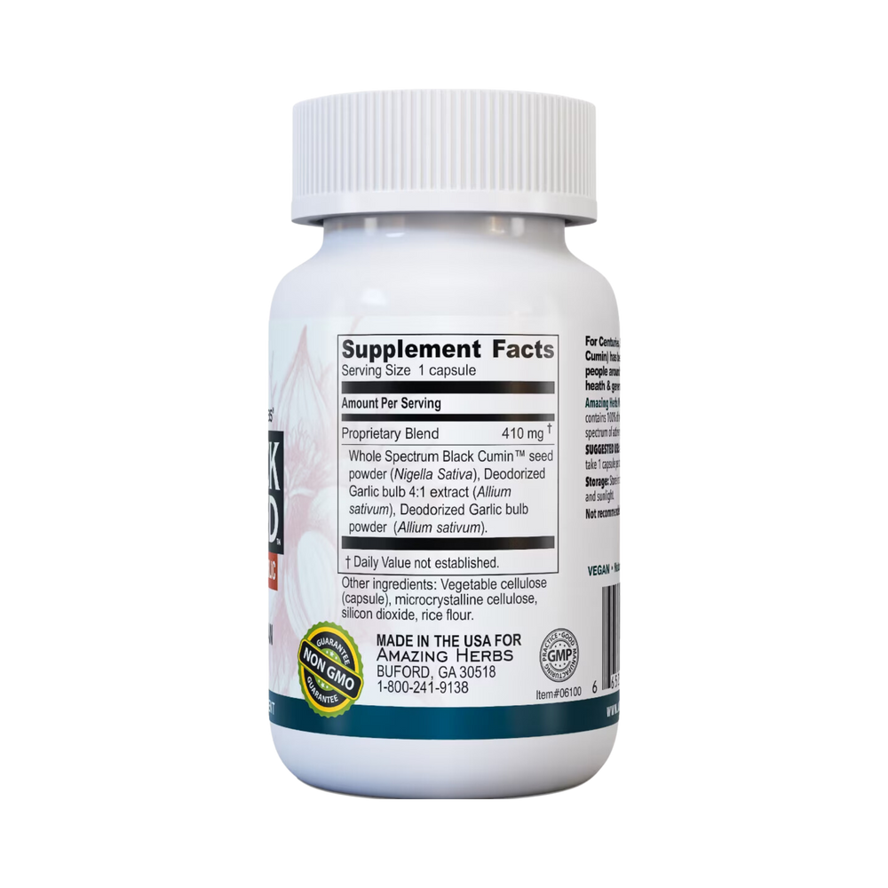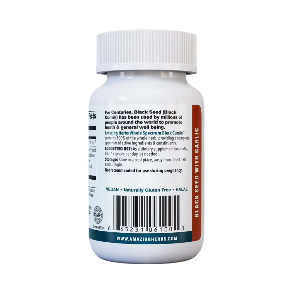 Amazing Herbs, Whole Spectrum Black Seed with High Potency Garlic, 100 Caps