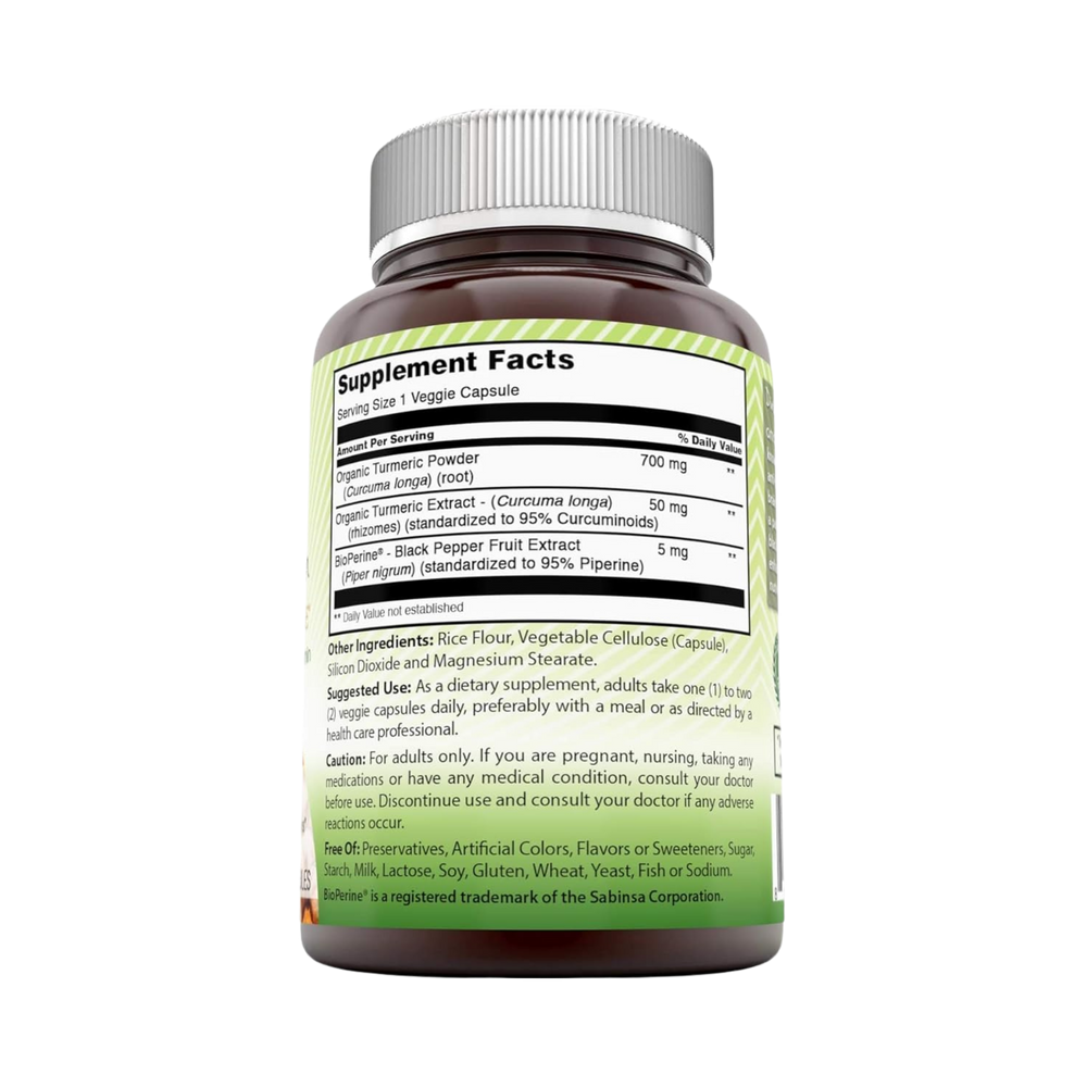 Each veggie Capsule of Amazing India Turmeric-Curcumin with Bioperine dietary supplement provides:
