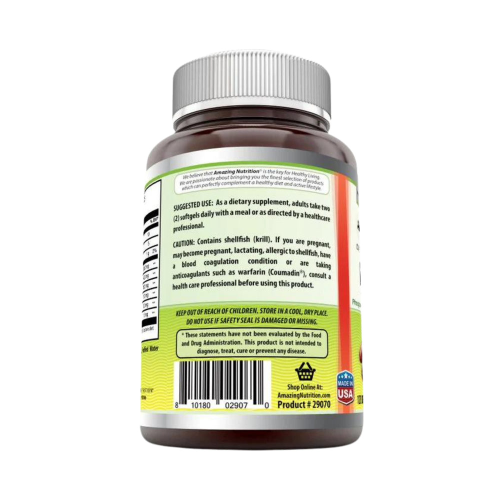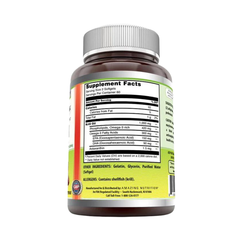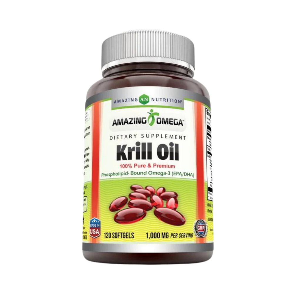 Omega-3's BenefitsOmega-3s is a great food supplement to support overall well-being. Krill Oil Softgels are an exceptionally good source of omega-3 fatty acids. Omega-3 supports cardiovascular health by helping to lower the level of triglycerides present in the blood and helping to maintain existing healthy cholesterol and blood pressure levels. Omega-3s support joint health, they have anti-inflammatory properties that may help to reduce swelling, stiffness, and joint pain caused due to inflammation. The omega-3 fatty acid is also known as docosahexaenoic acid (DHA), an important ingredient for optimal brain function. DHA is instrumental in the function of brain cell membranes, which are important for the transmission of brain signals helping to improve communication between the brain cells. Krill Oil Better than Fish Oil Traditionally, fish oil is a great way to get omega-3s naturally. However, some people dislike fish oil for its fishy aftertaste. Fish oil can also be difficult to digest and cause gaseousness. Luckily, krill oil is a relatively recently harvested source that may be superior to fish oil in many ways. The omega-3s in krill oil are part of a phospholipid molecule, which makes them easier for your body to absorb and digest. Krill oil is also a great source of an antioxidant called astaxanthin.