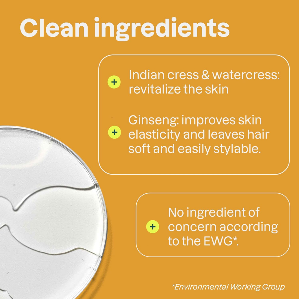 Aqua / water / eau, sodium coco-sulfate, coco-glucoside, vegetable glycerin, sodium cocoyl isethionate, citric acid, panthenol (vitamin B5), glyceryl oleate, cyamopsis tetragonoloba (guar) gum, sodium benzoate, inulin, potassium sorbate, nasturtium officinale (watercress / cresson) extract, tropaeolum majus (Indian cress / capucine) extract, sodium chloride, maltodextrin, moringa oleifera seed extract, salix nigra (willow / saule) bark extract, populus tremuloides (aspen / tremble) bark extract, triethyl citrate*, terpineol*, methyldihydrojasmonate*, nerolidol*, *fragrance (parfum).